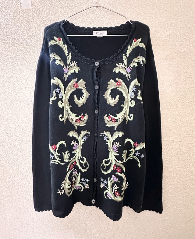 THE TOG SHOP 長袖ニットカーディガン 花柄 黒