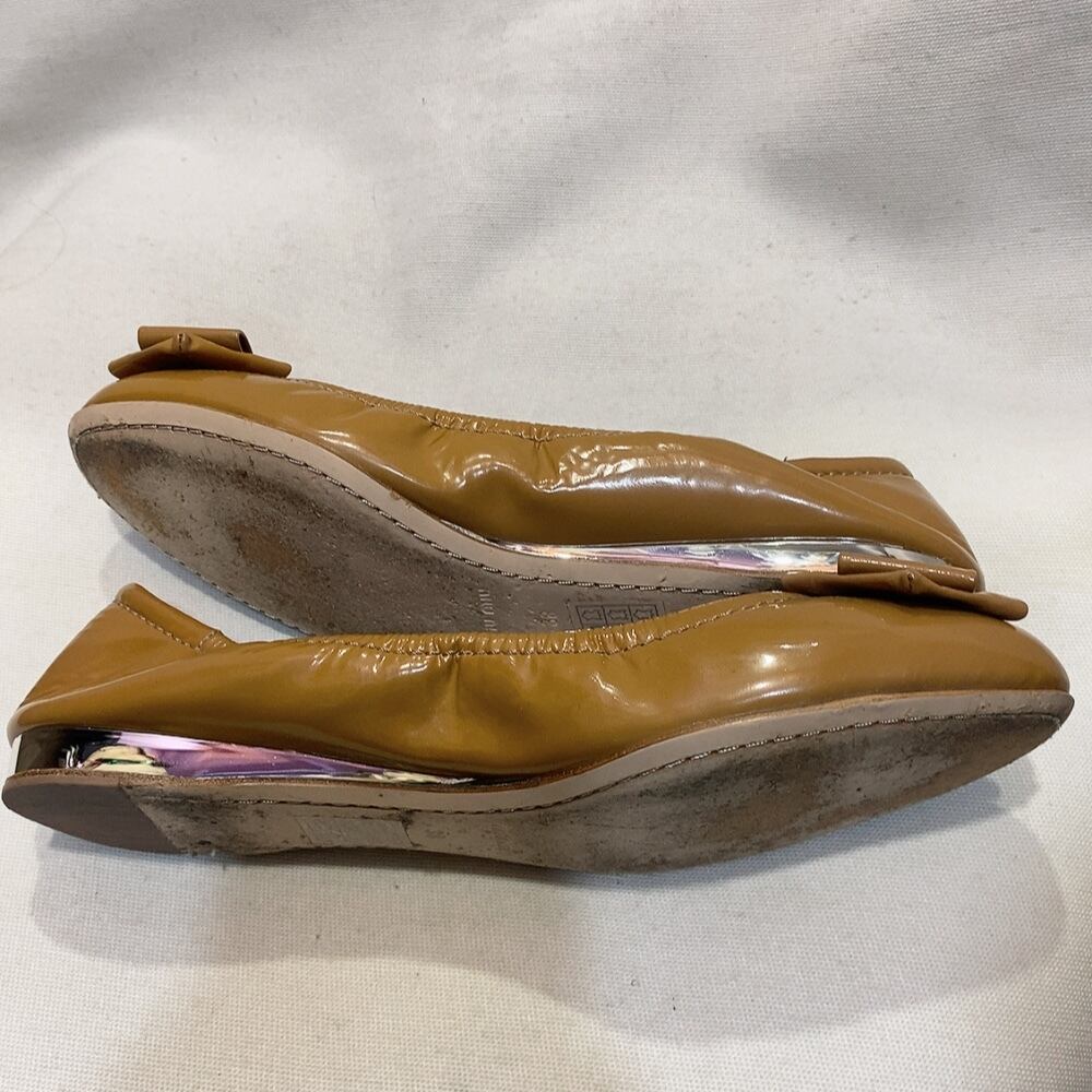 ミュウミュウ フラットシューズ キャラメル色 エナメル リボン miumiu