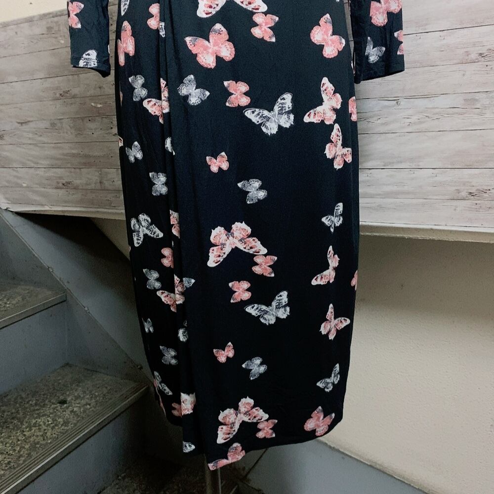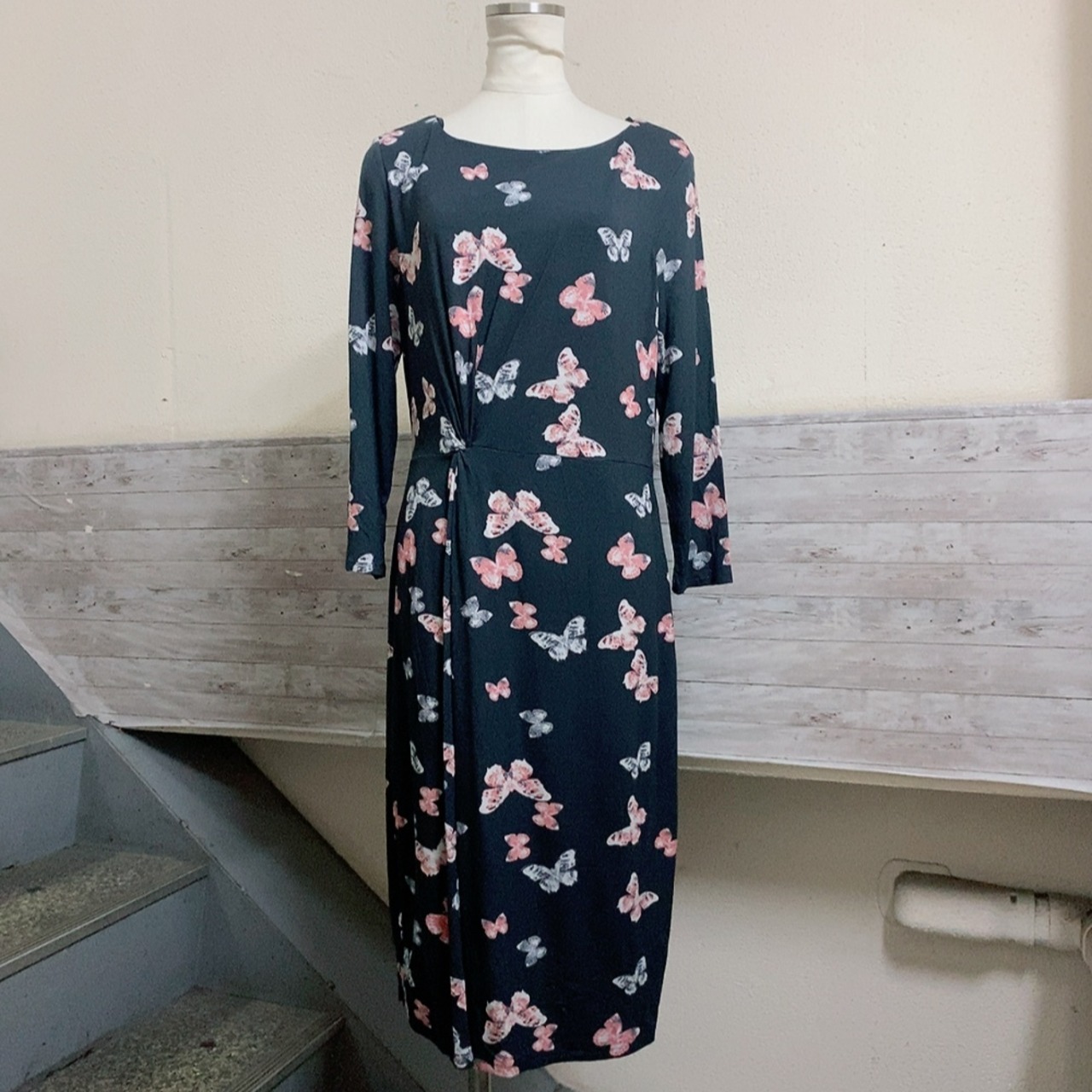 ローラアシュレイ 長袖ワンピース 黒グレー色 蝶々柄 LAURA ASHLEY