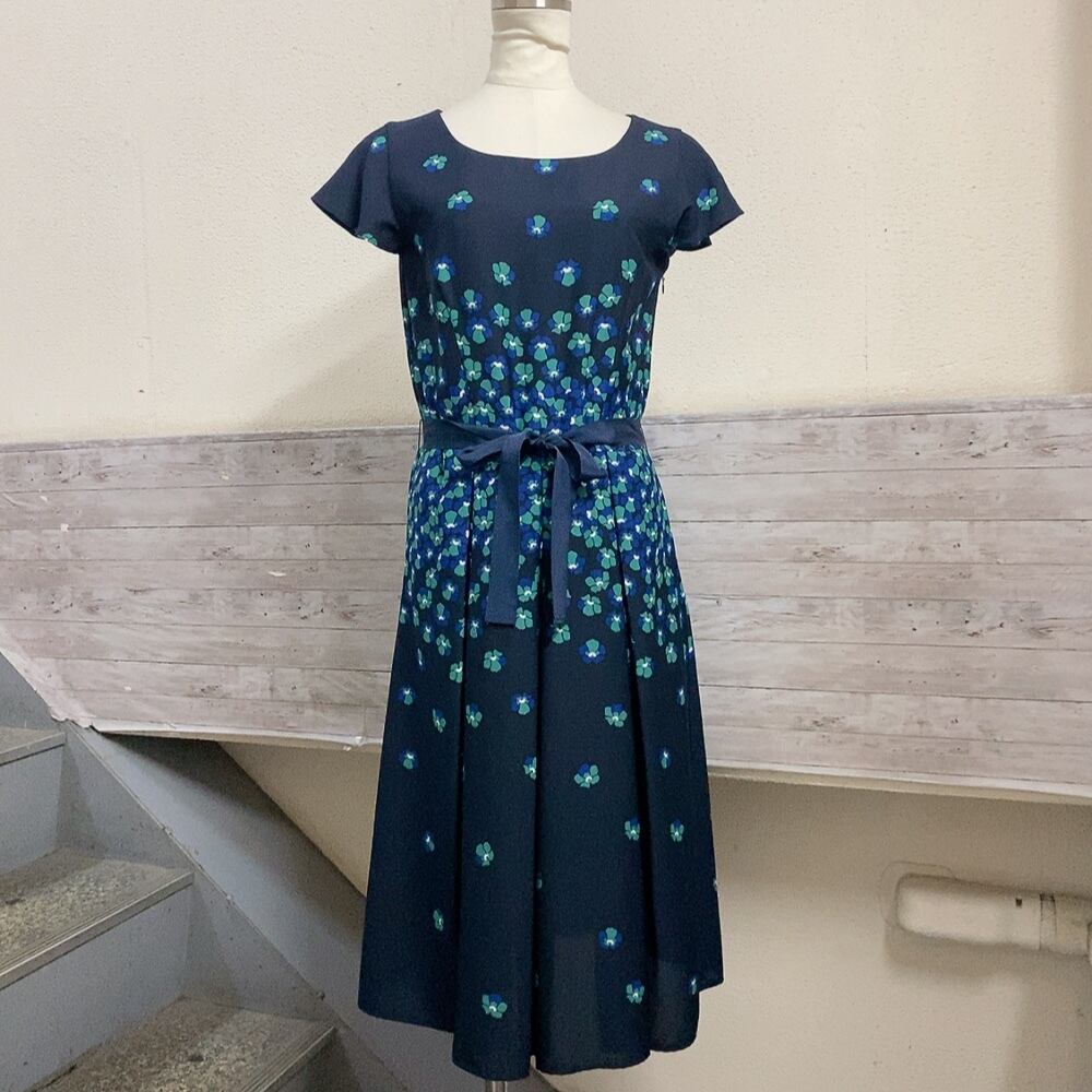 ローラアシュレイ 半袖ワンピース 濃紺色 花柄 LAURA ASHLEY