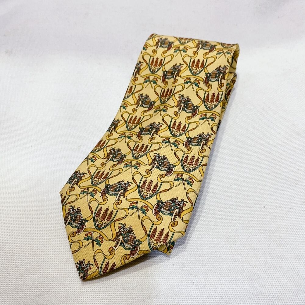 フェラガモ ネクタイ ベージュ色 シルク クラッシックカー柄 Salvatore Ferragamo