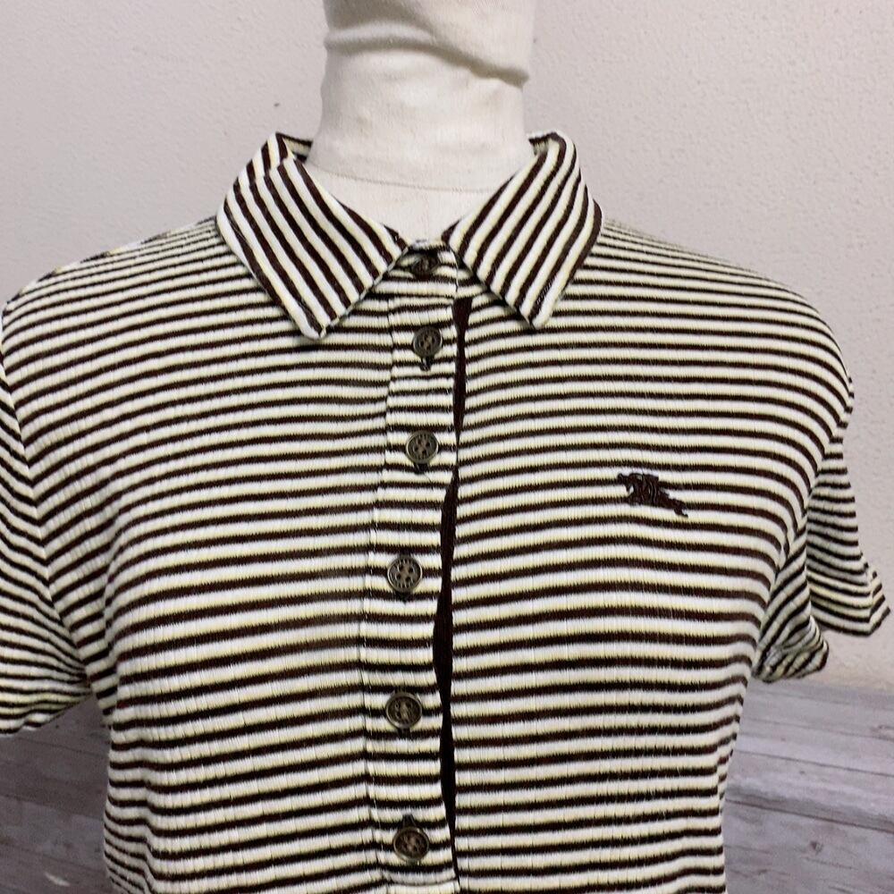 バーバリー 半袖ポロシャツ 焦げ茶色 ベージュ色 ボーダー柄 BURBERRY LONDON