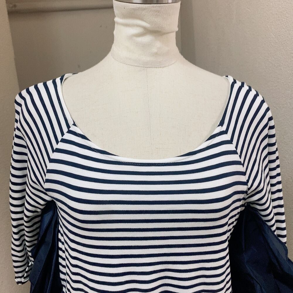 ランバン 長袖トップス 白 黒 ボーダー柄 LANVIN en Blue