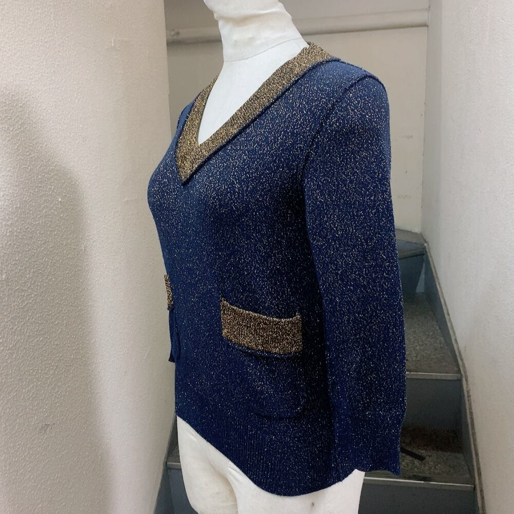 ゾーアンドネマ 長袖セーター 紺 ゴールド色 カシミヤ混 Zhor&Nema
