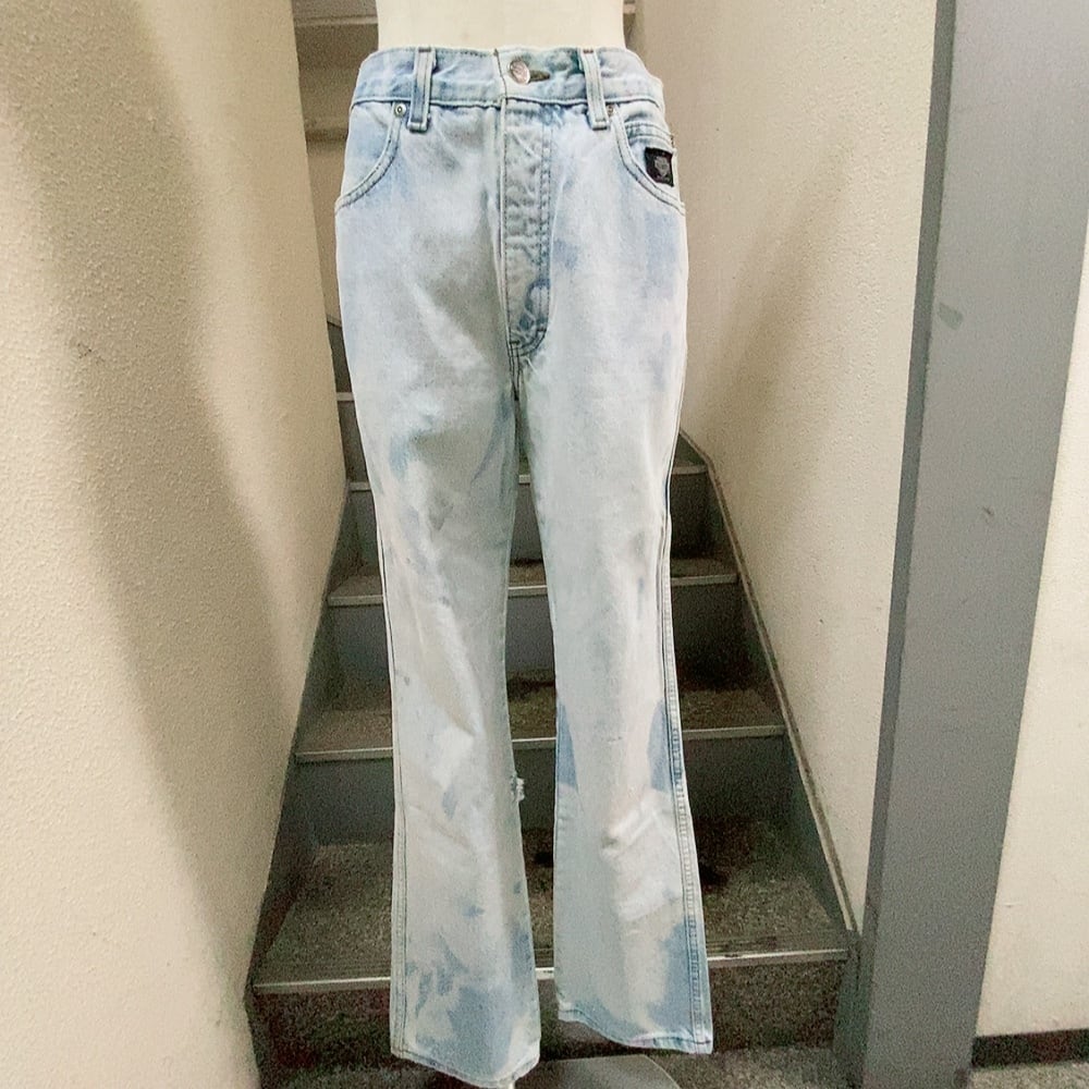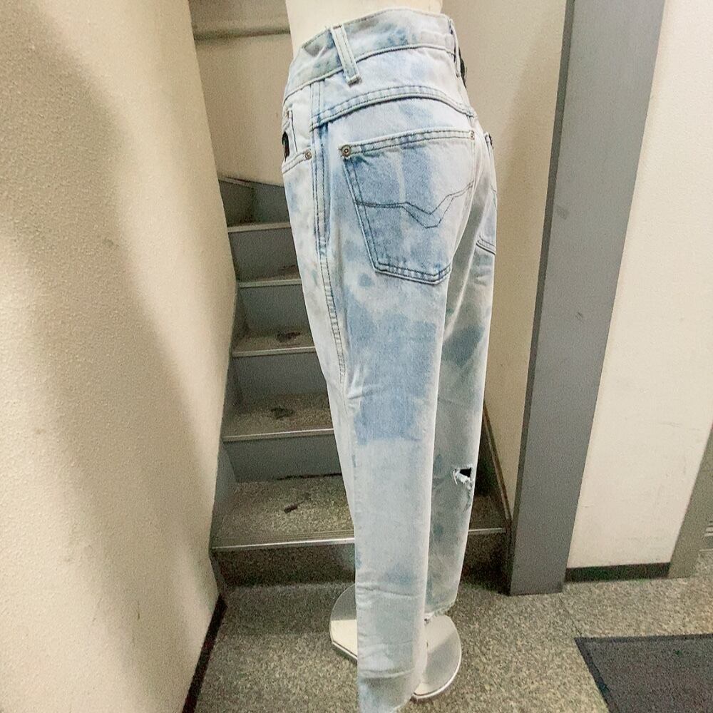 ケミカルウォシュ、ダメージ加工が施されたデザインです。