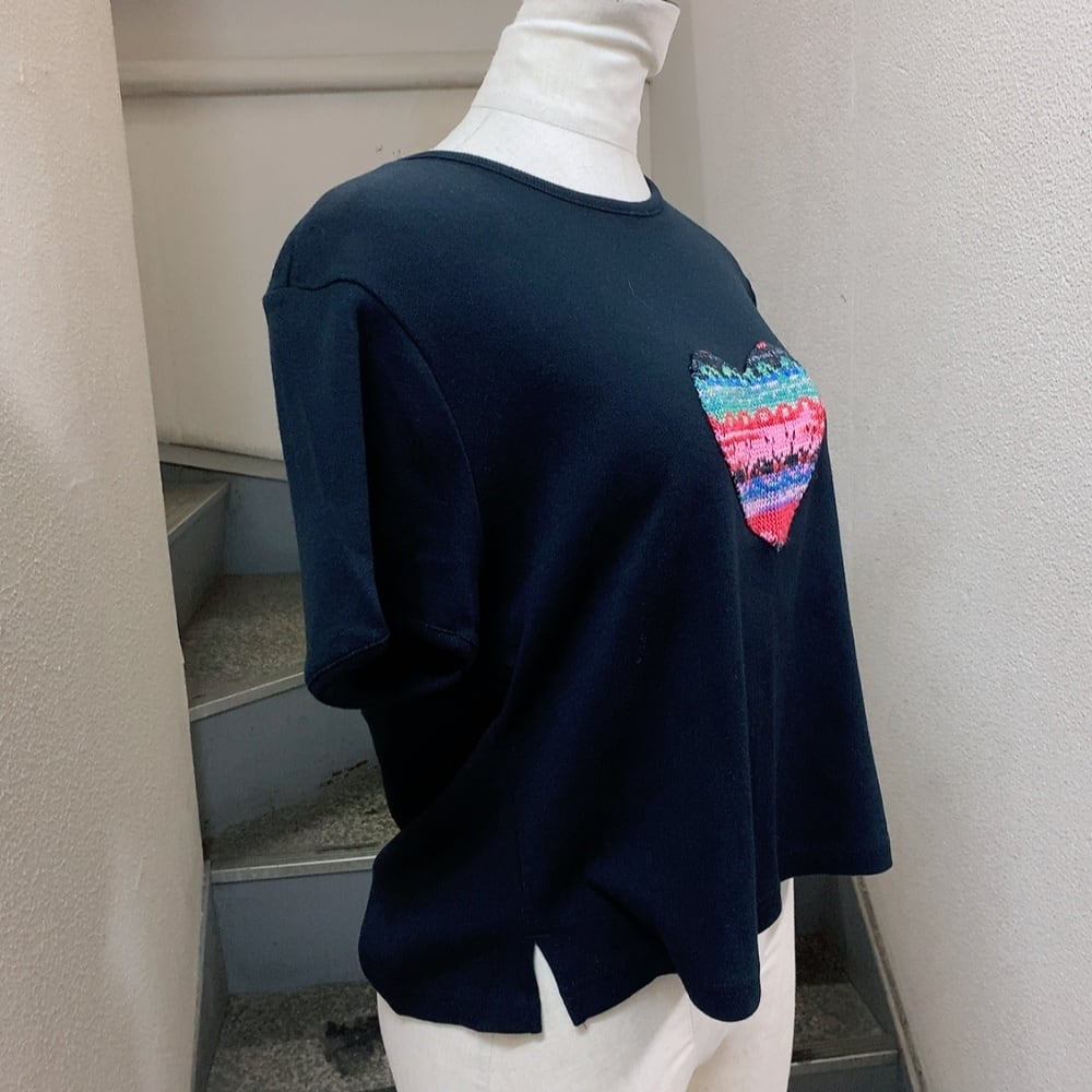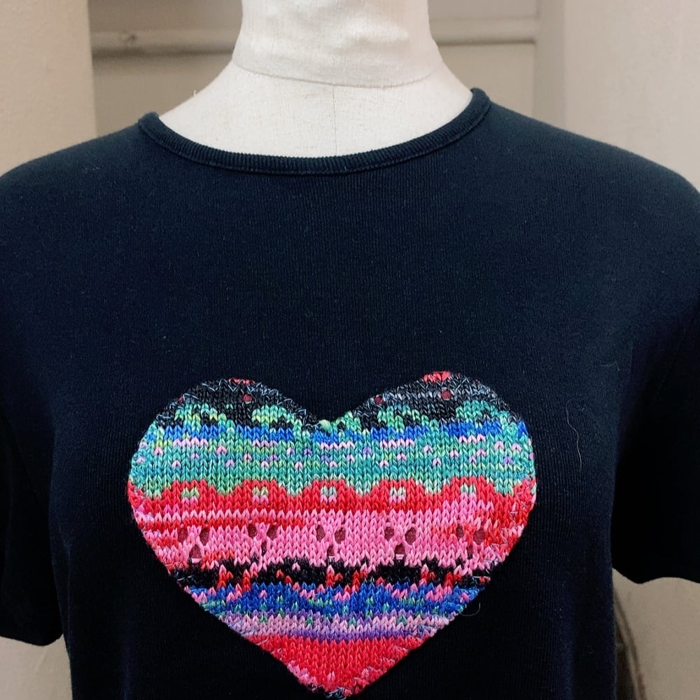 モリオカサチコ 半袖トップス 黒 ハート柄 MORIOKA SACHIKO