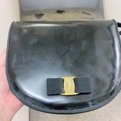 フェラガモ ショルダーバッグ 黒 エナメル Salvatore Ferragamo
