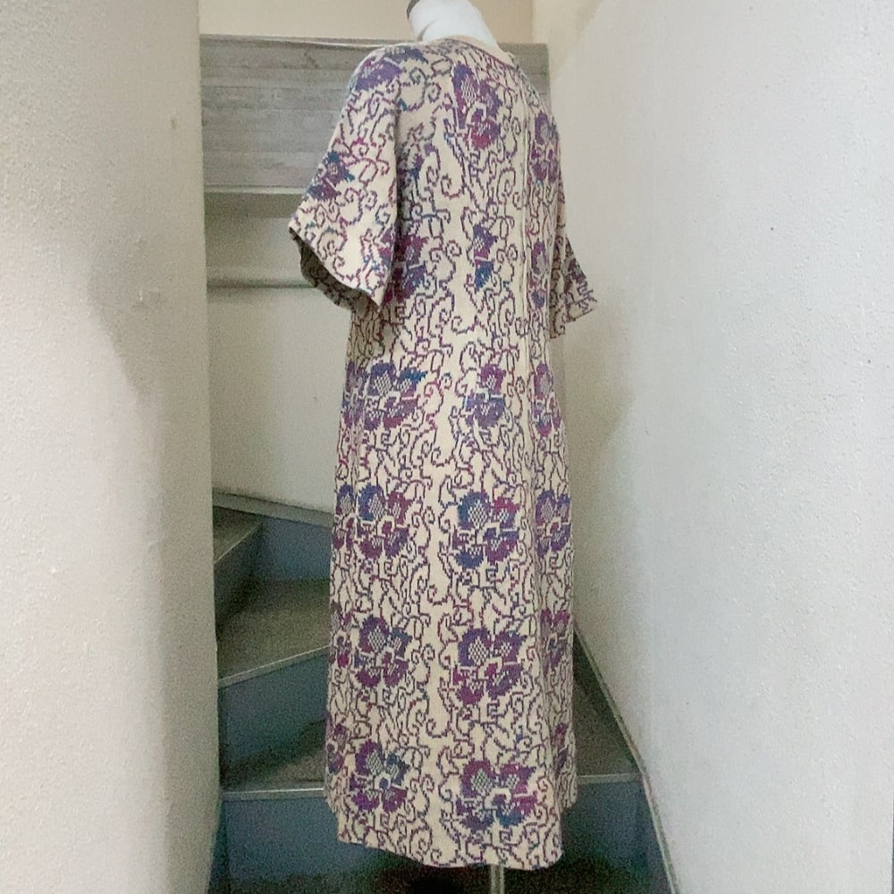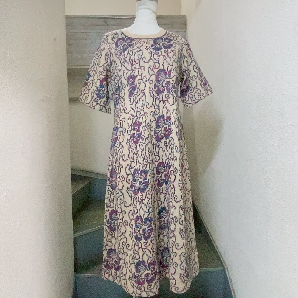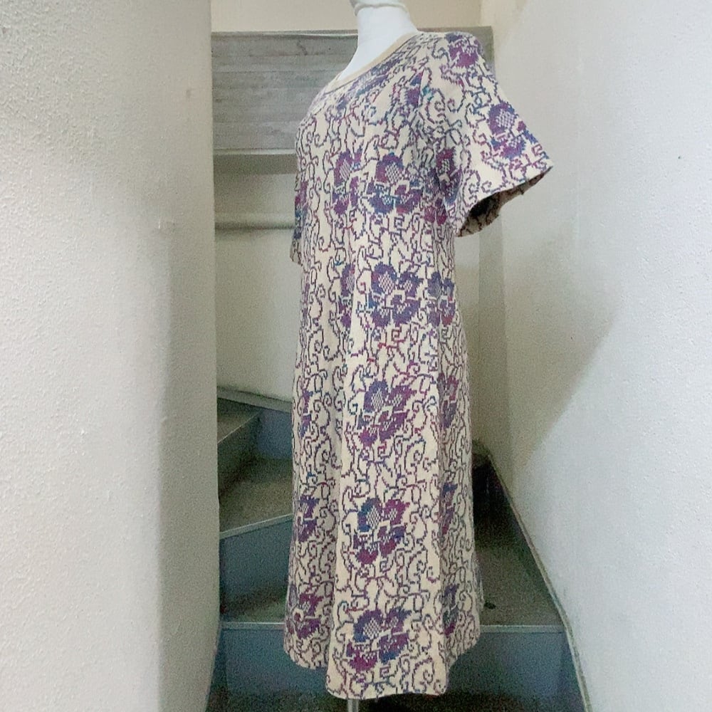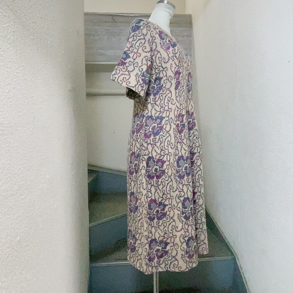 サイトウトヨコ ニットワンピース ベージュ 花柄 Saito Toyoko 斉藤都世子