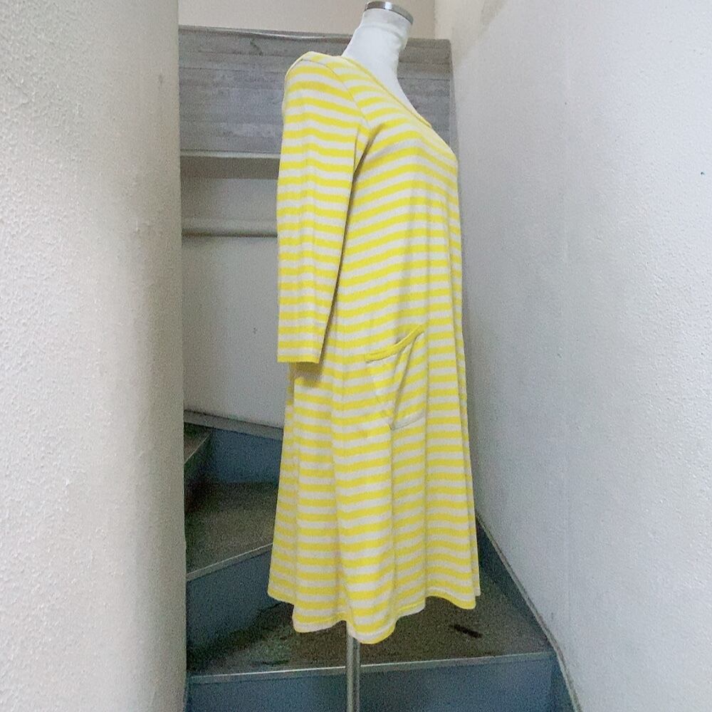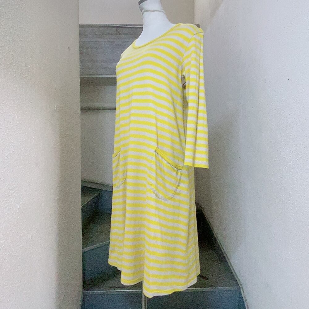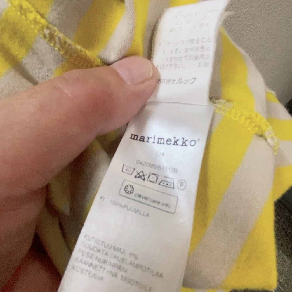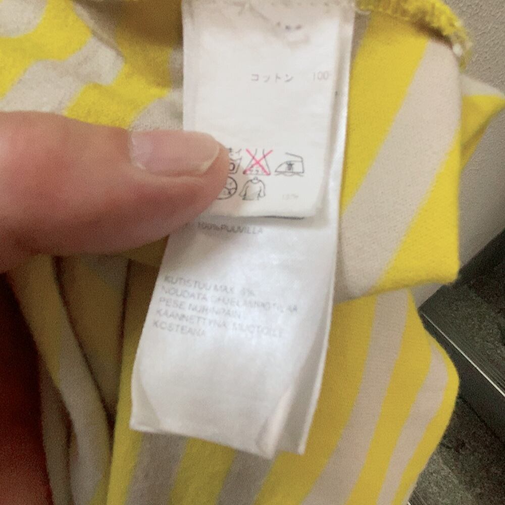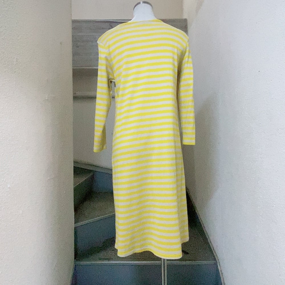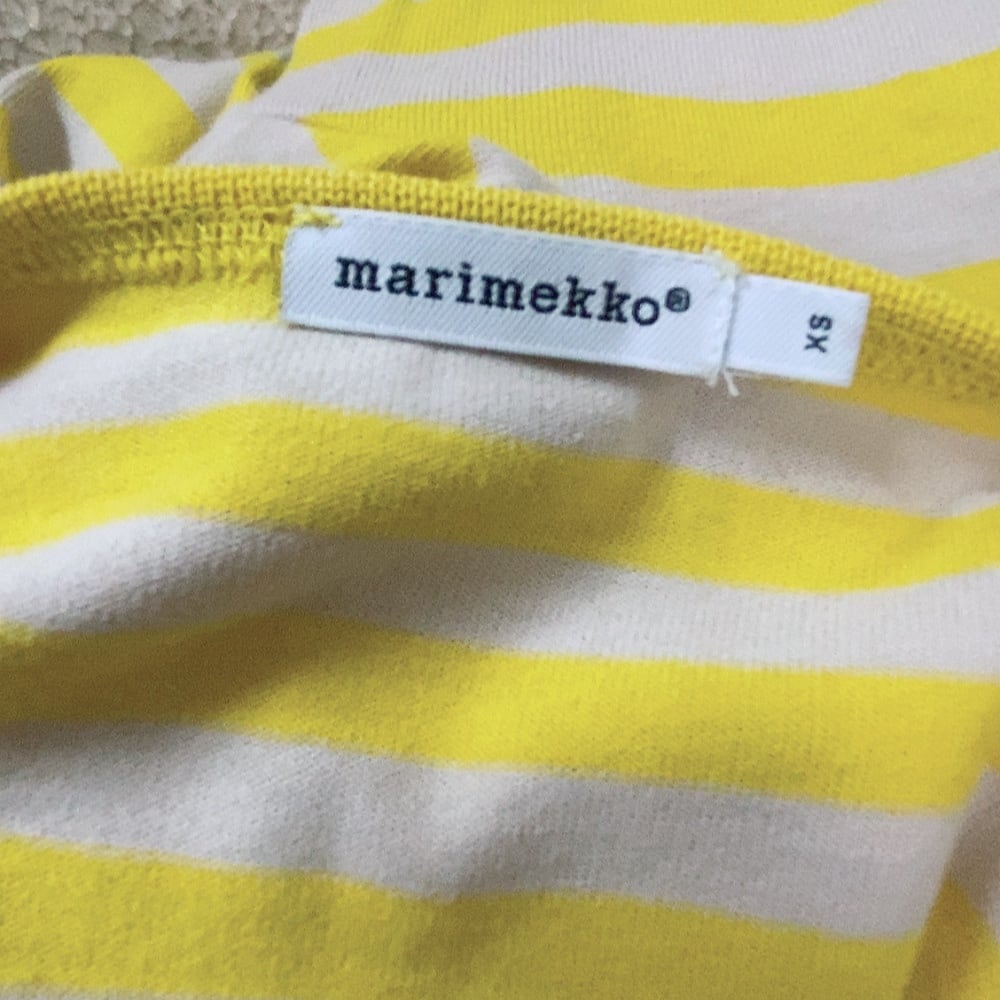 マリメッコ 長袖ワンピース ベージュ 黄色 ボーダー柄 marimekko
