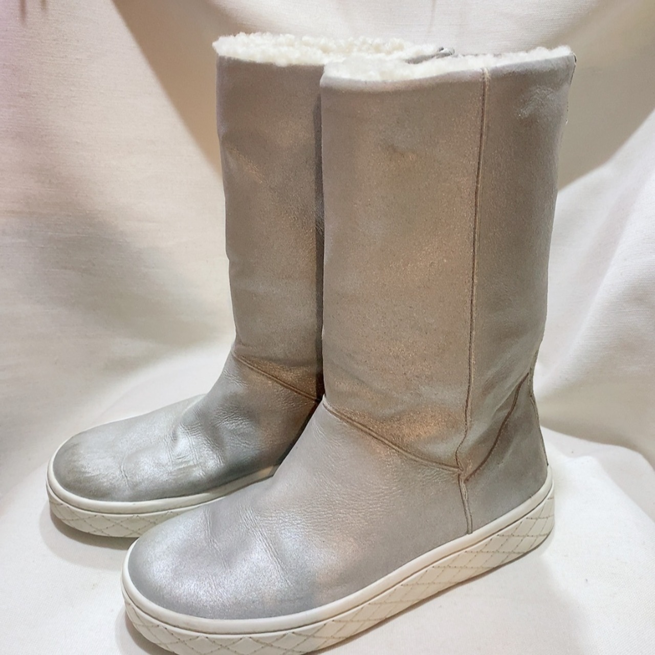 モンクレール ブーツ シルバー色 ムートンブーツ MONCLER