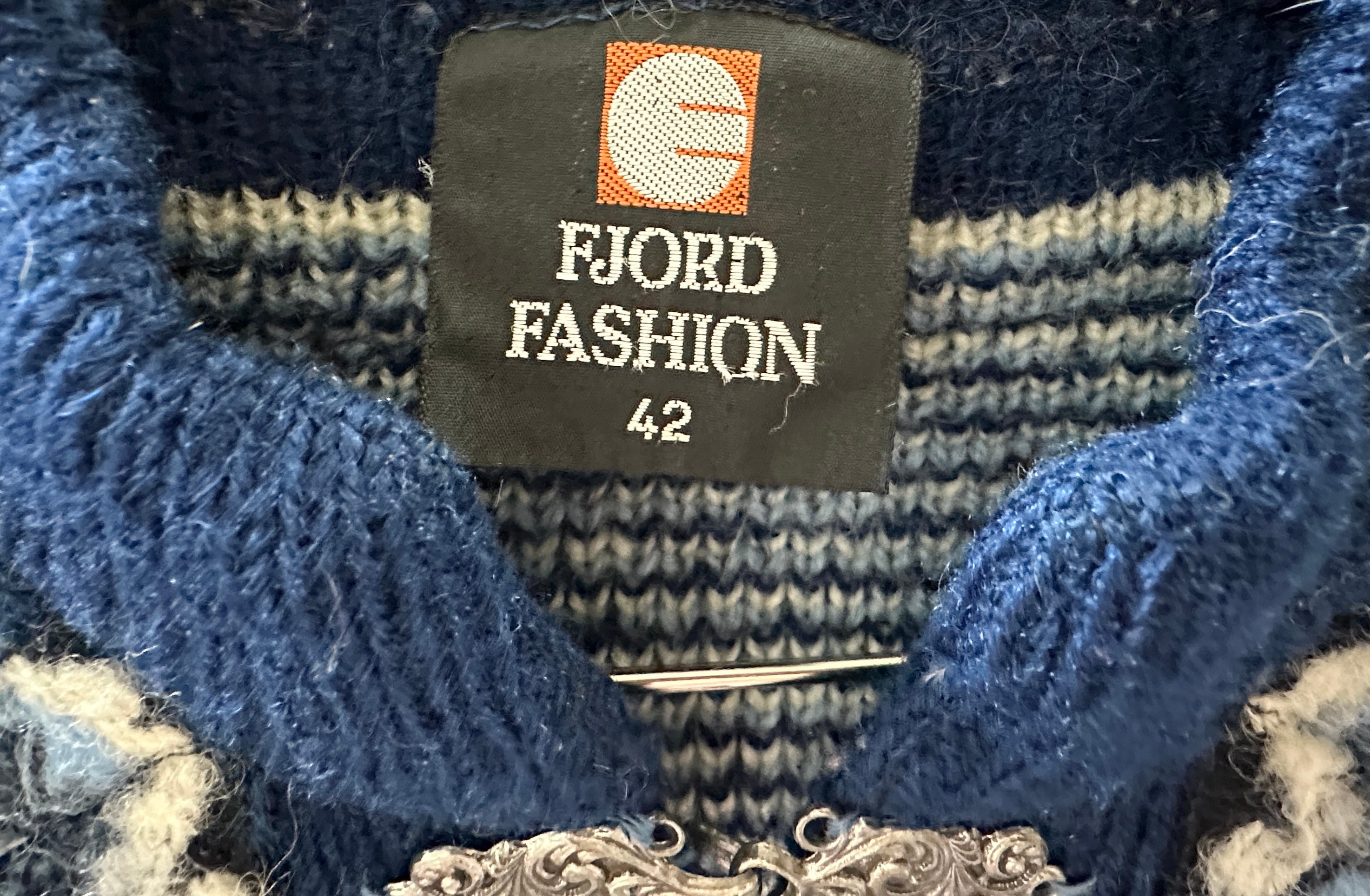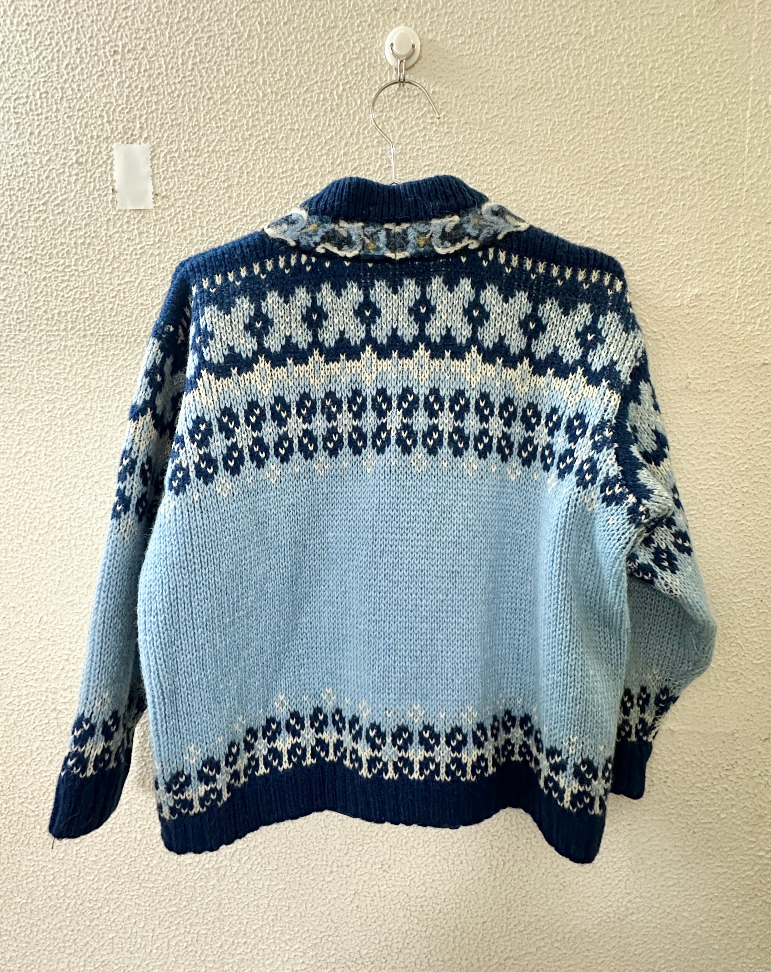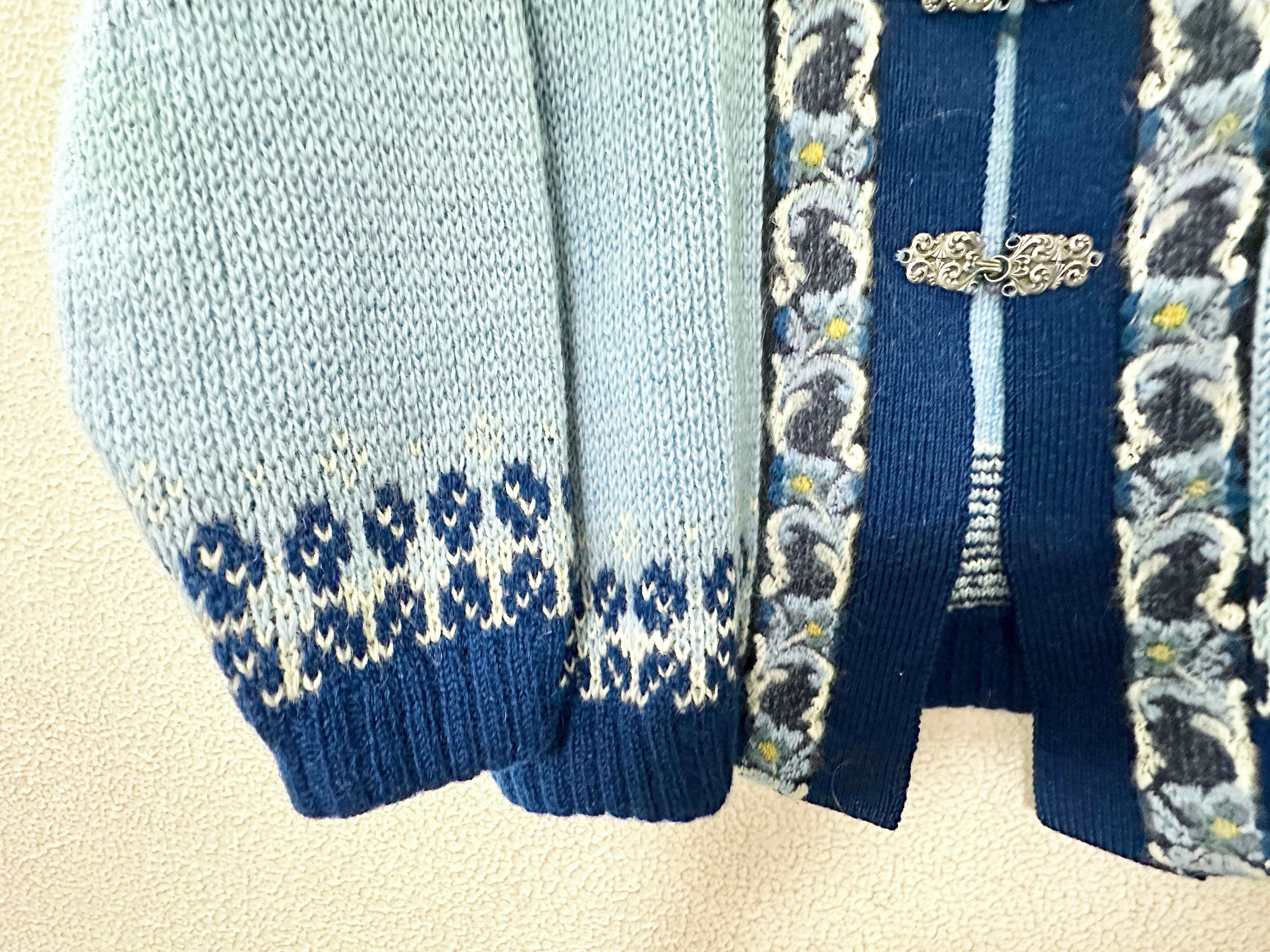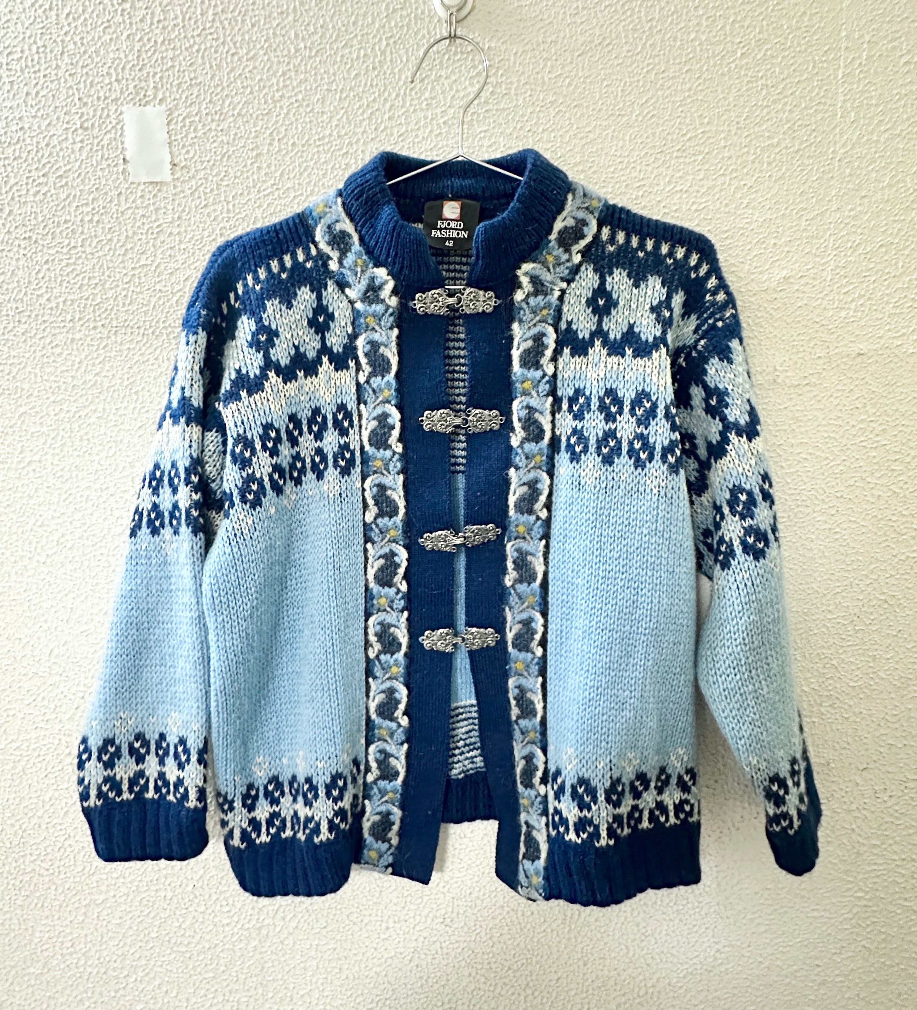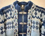 フィヨルドファッション 長袖ニットカーディガン 青 ノルディック柄 ノルウェー製