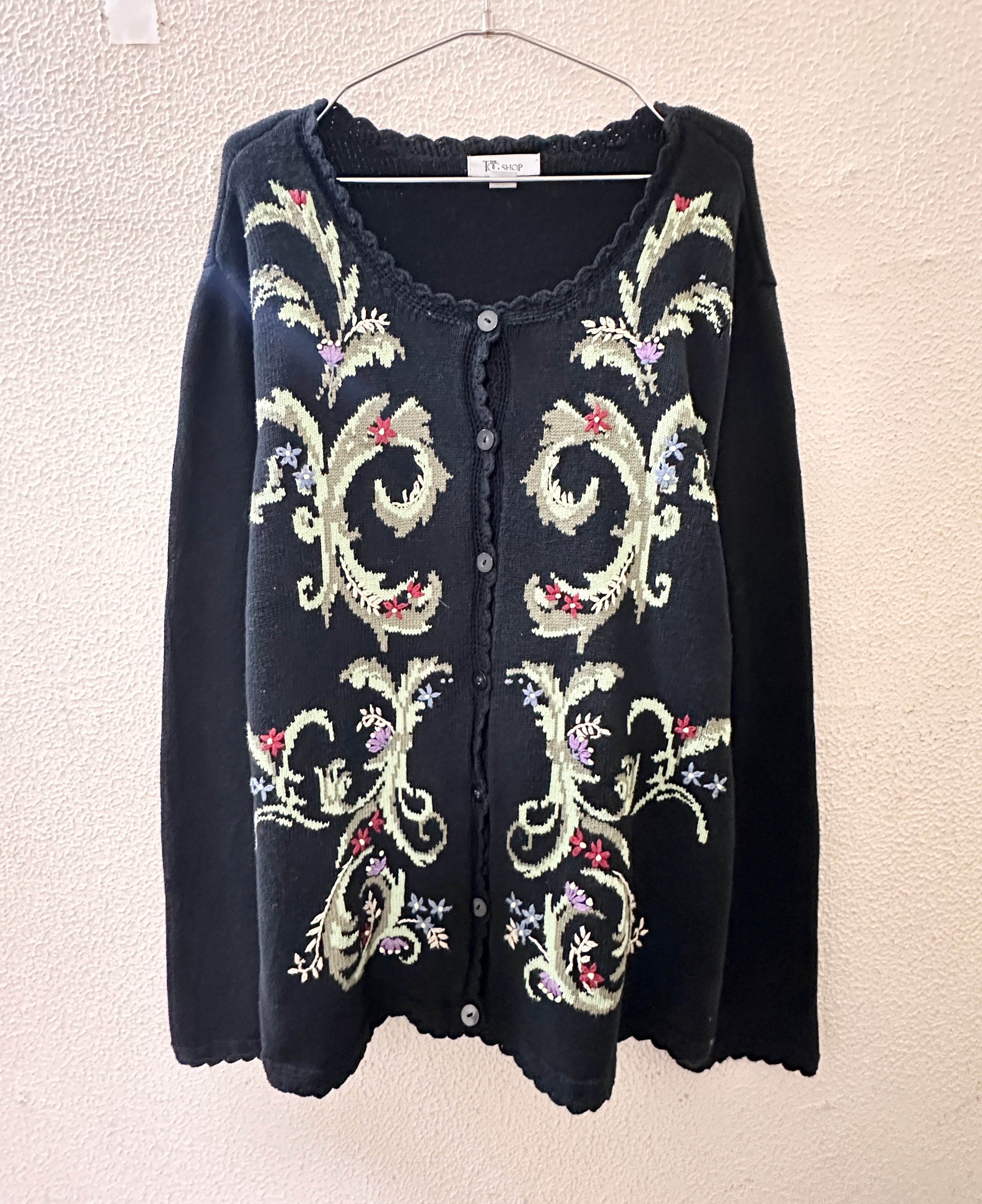 THE TOG SHOP 長袖ニットカーディガン 花柄 黒