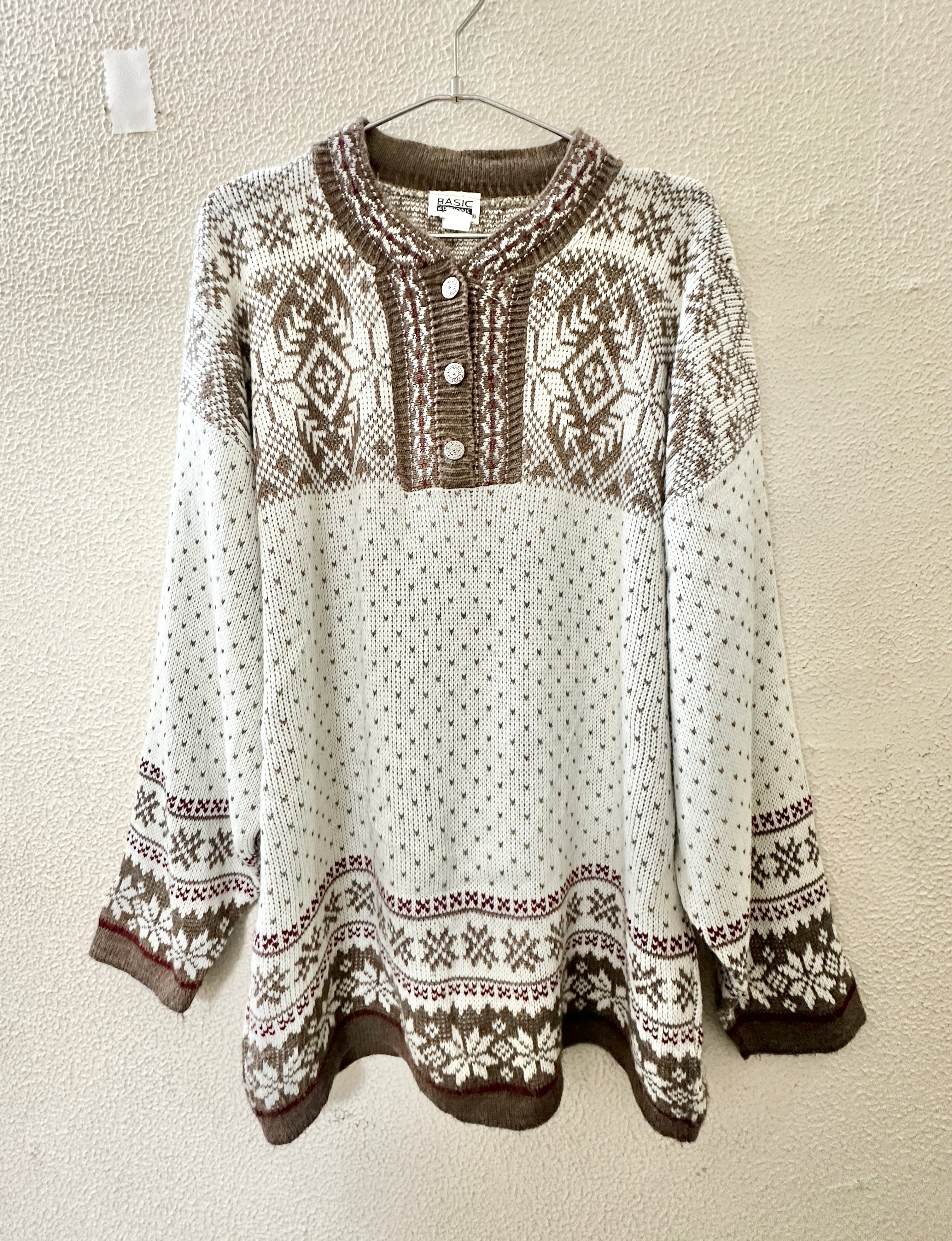 BASIC EDITIONS 長袖ニット ヴィンテージ ベージュ ノルディック柄