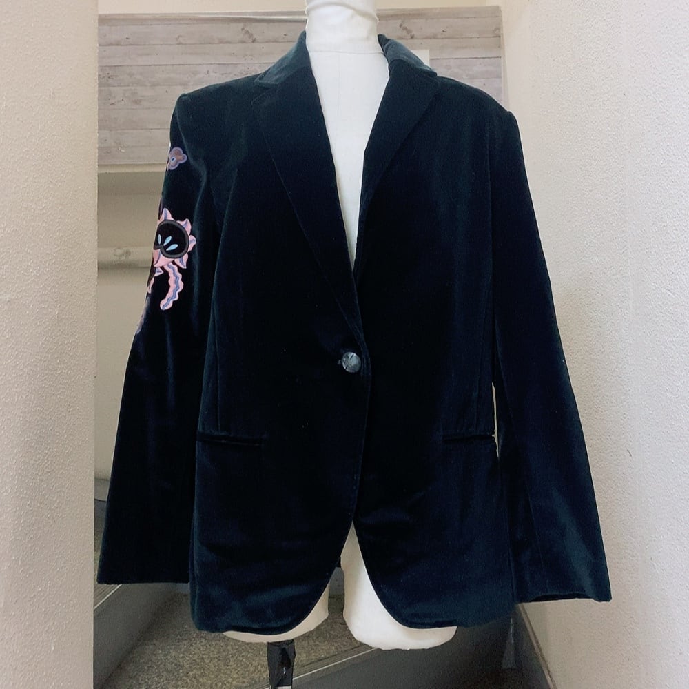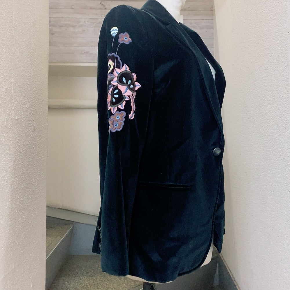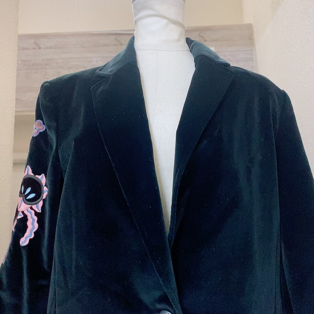 ケンゾー ベロアジャケット 黒 花柄 刺繍 KENZO