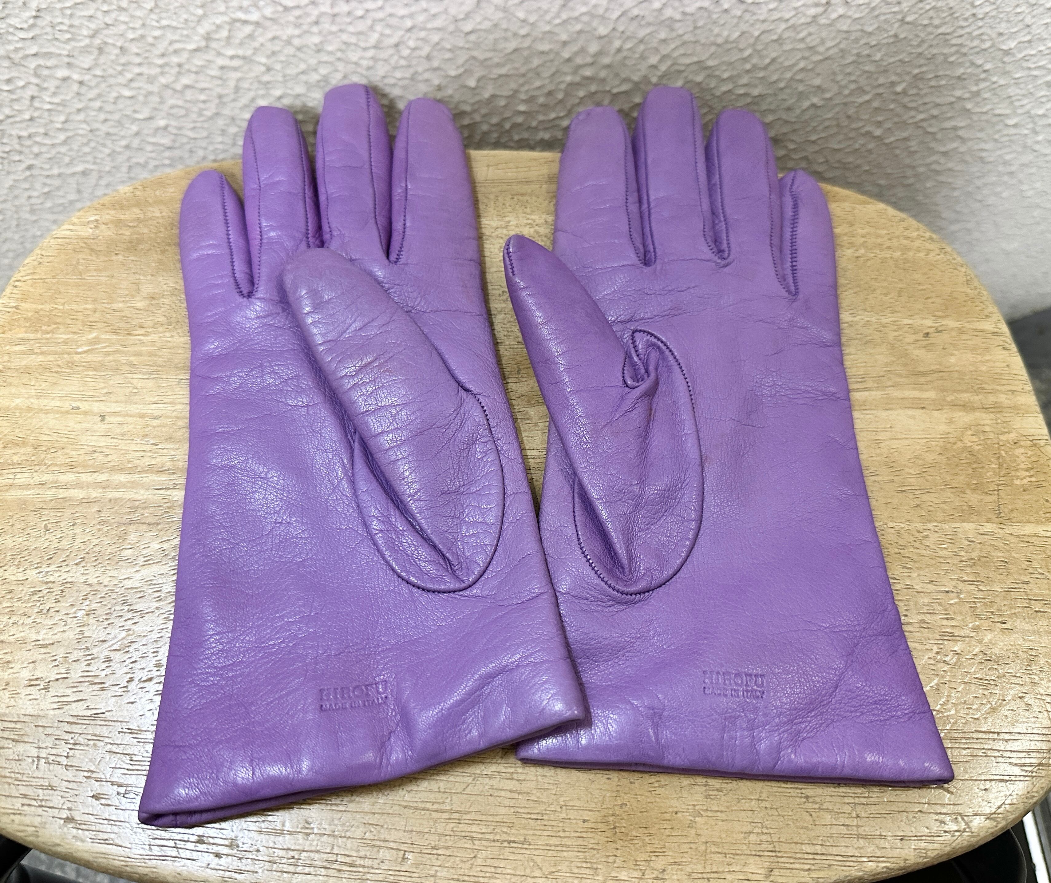 ヒロフ 手袋 紫 カシミヤ レザー HIROFU