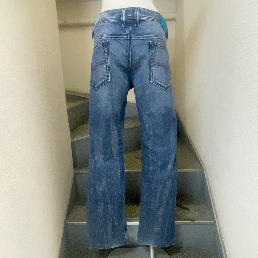 ● サイズ・ 33 ウエスト約90センチ、ヒップ約110センチ、股上約24センチ、股下約78センチ、太股幅約28センチ、裾幅約20センチ
