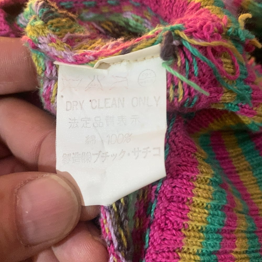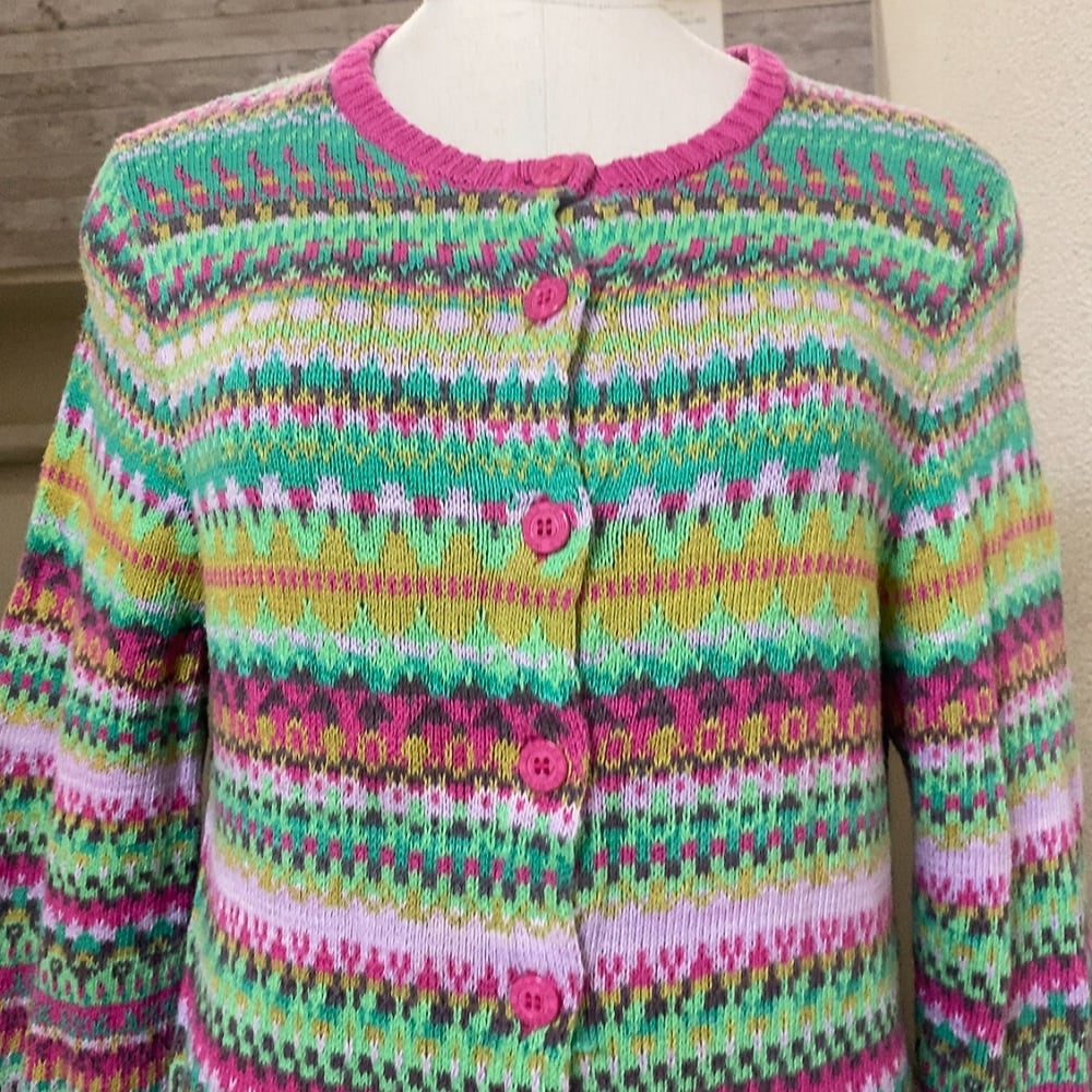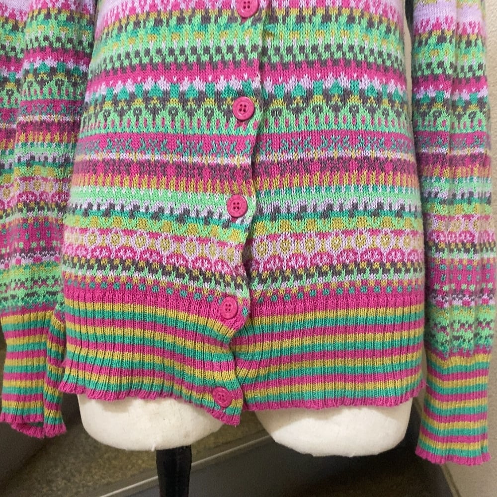 モリオカサチコ カーディガン ピンク 黄緑色 MORIOKA SACHIKO