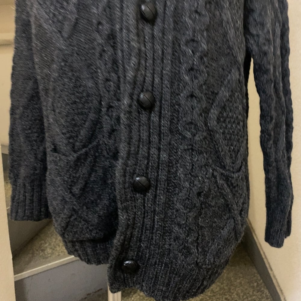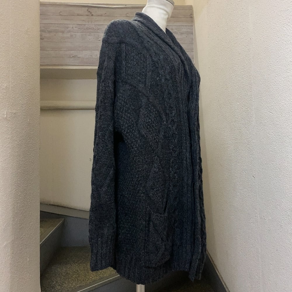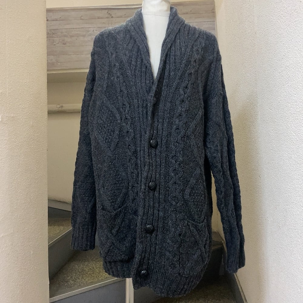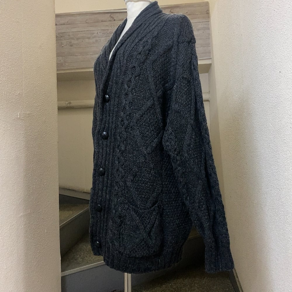 アランクラフト ニットカーディガン グレー色 ウール フィッシャーマンニット aran crafts