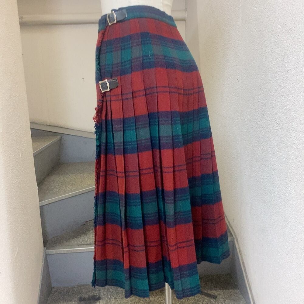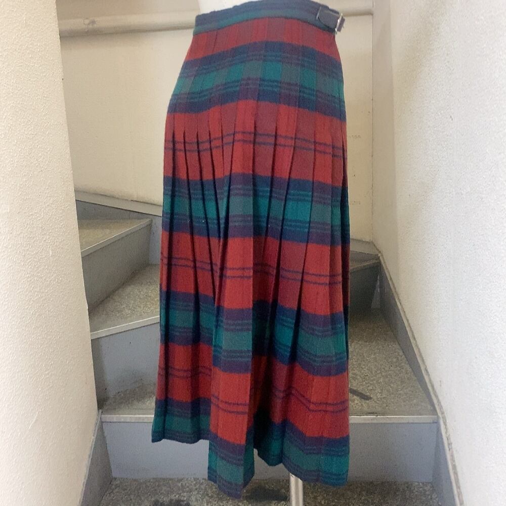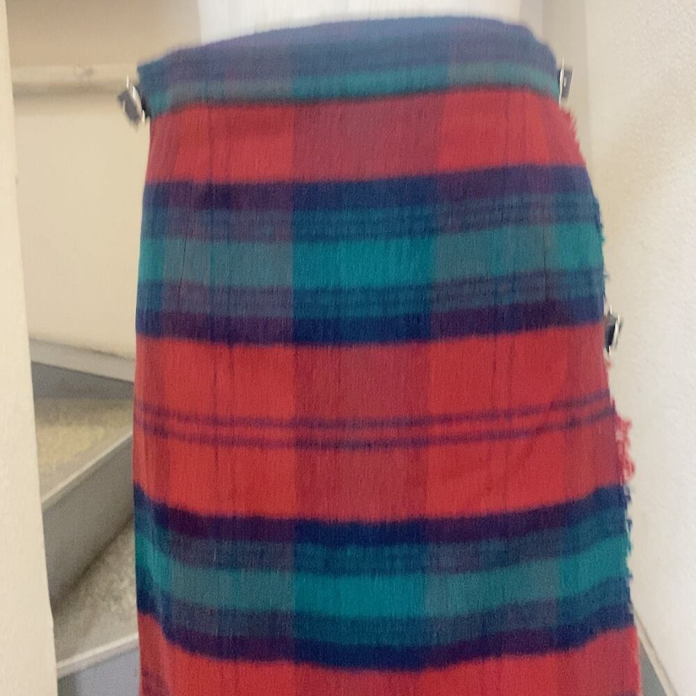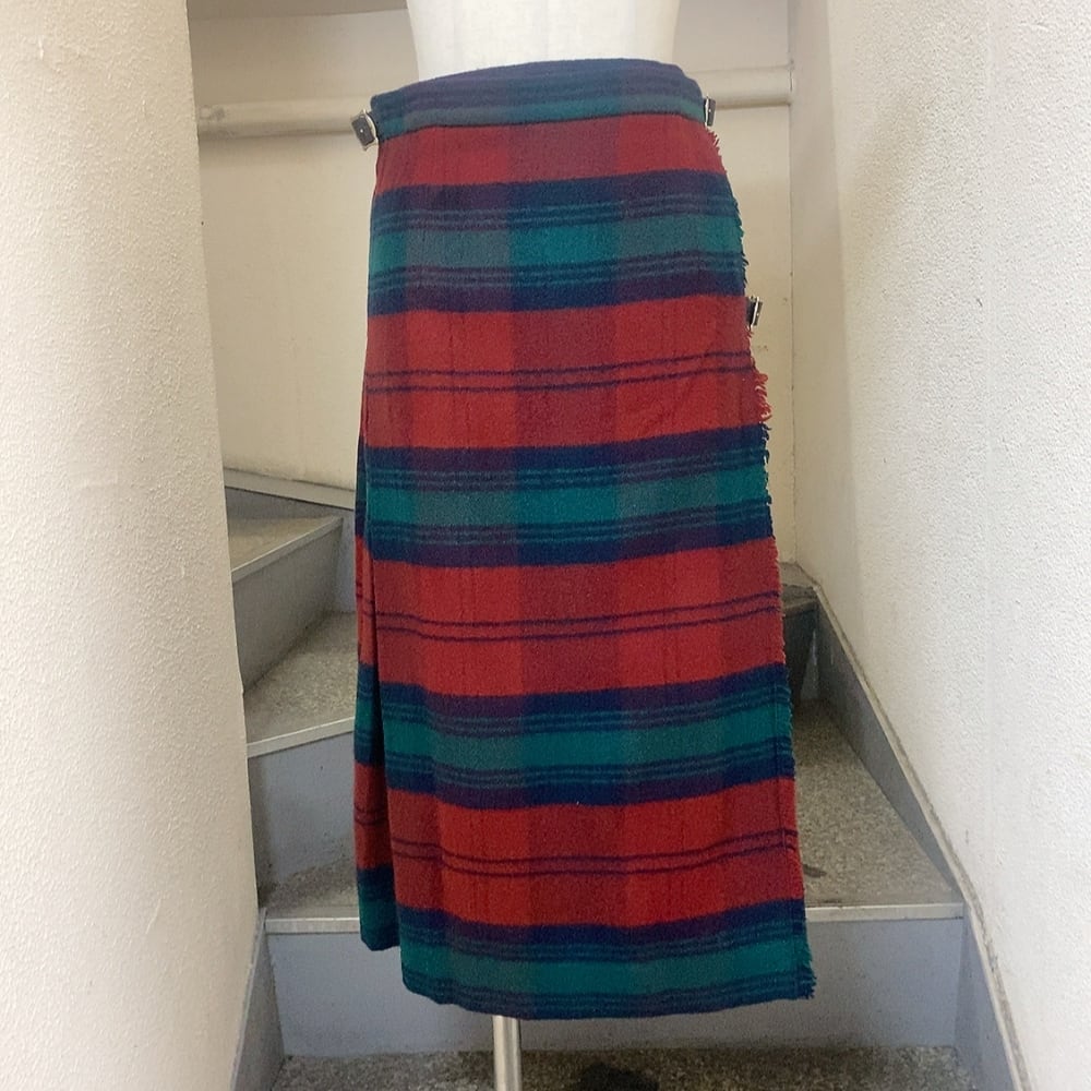 イェーガー 巻きスカート 赤 緑 紺 カシミヤ JAEGER スコットランド製