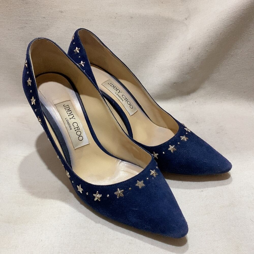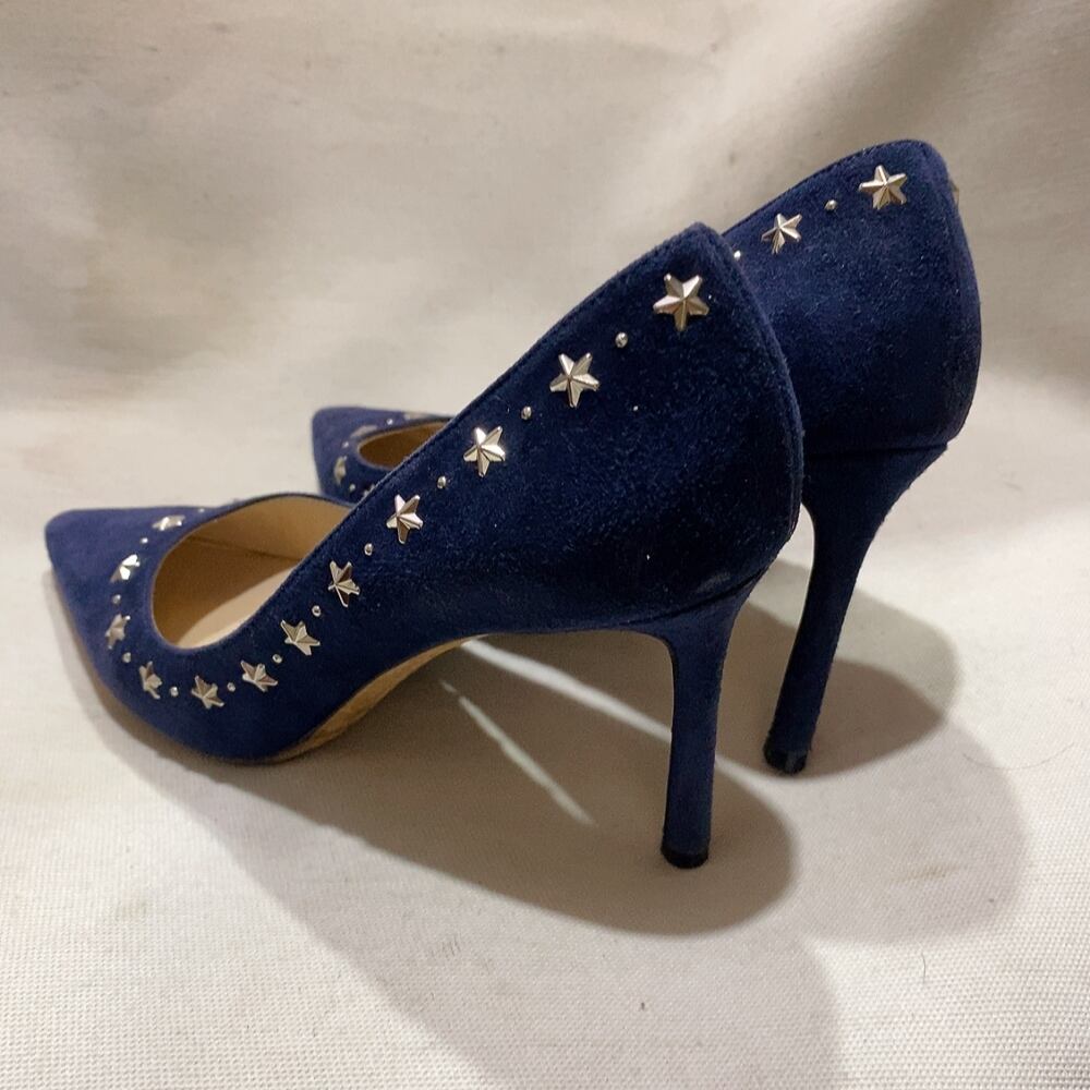 ジミーチュウ パンプス 紺 スウェード スタッズ JIMMY CHOO