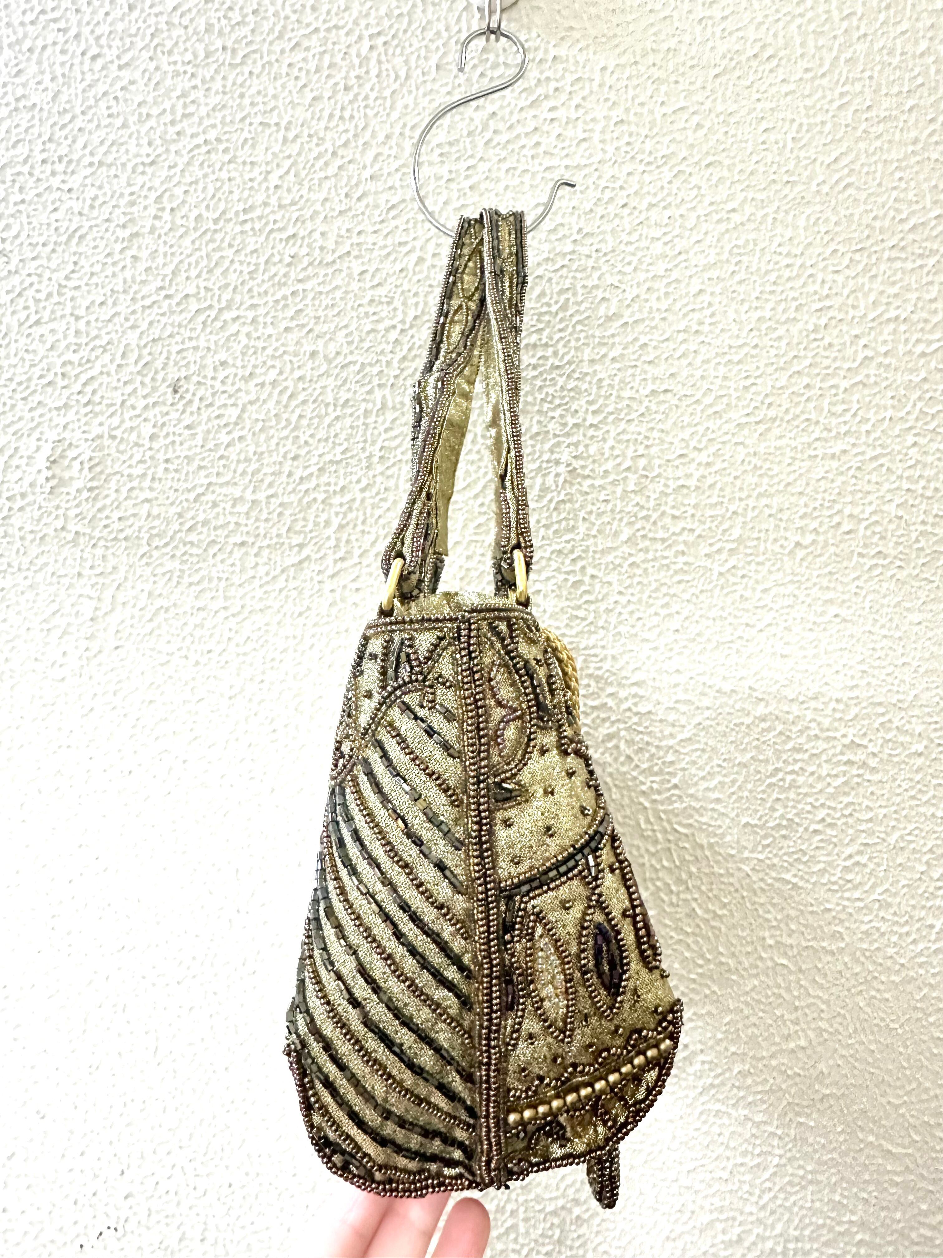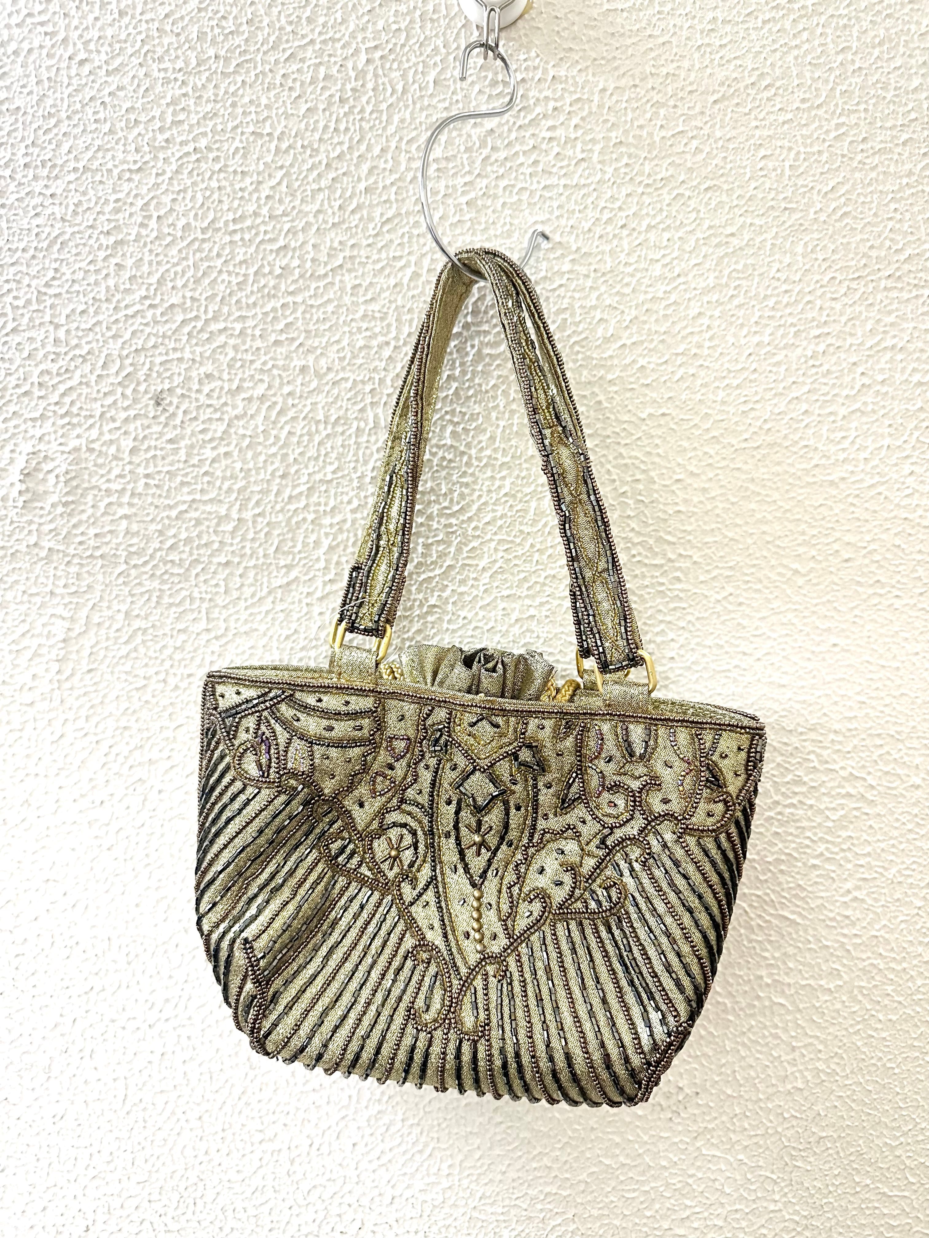 ヴィンテージ ハンドバッグ 巾着 ビーズ刺繍 ゴールド