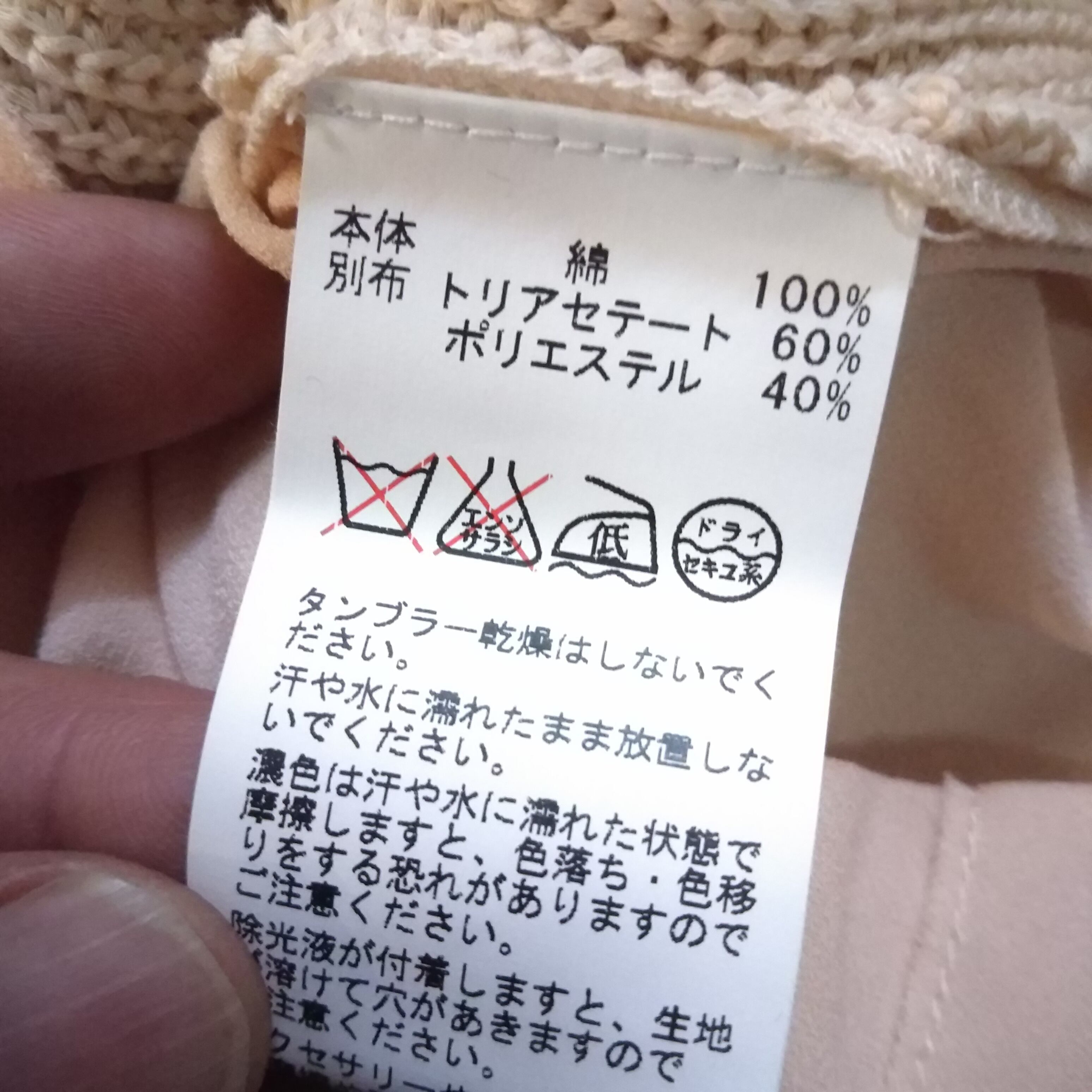 ● 素材・ 綿100%、トリアセテート60%、ポリエステル40%