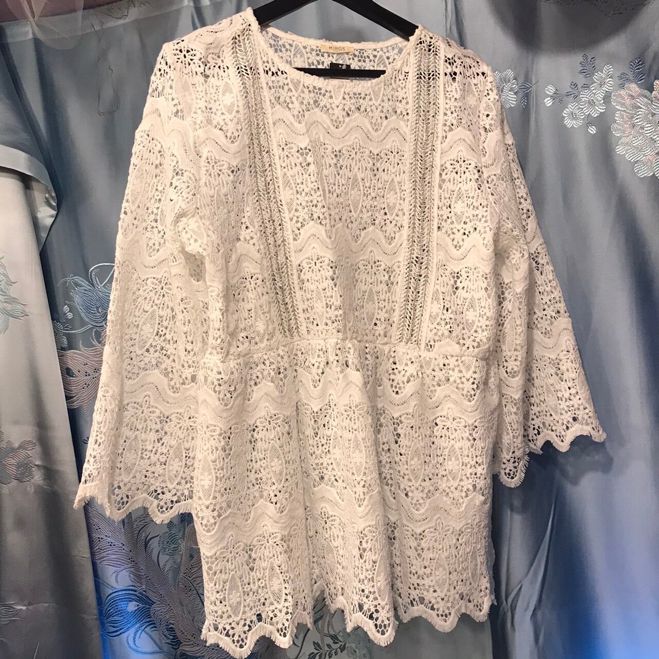 usedのレースブラウスです。色は白色です。ラインストーンが施されています