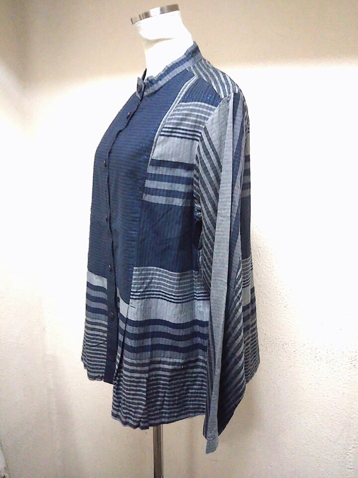 イッセイミヤケの長袖シャツです。色は紺色です。
