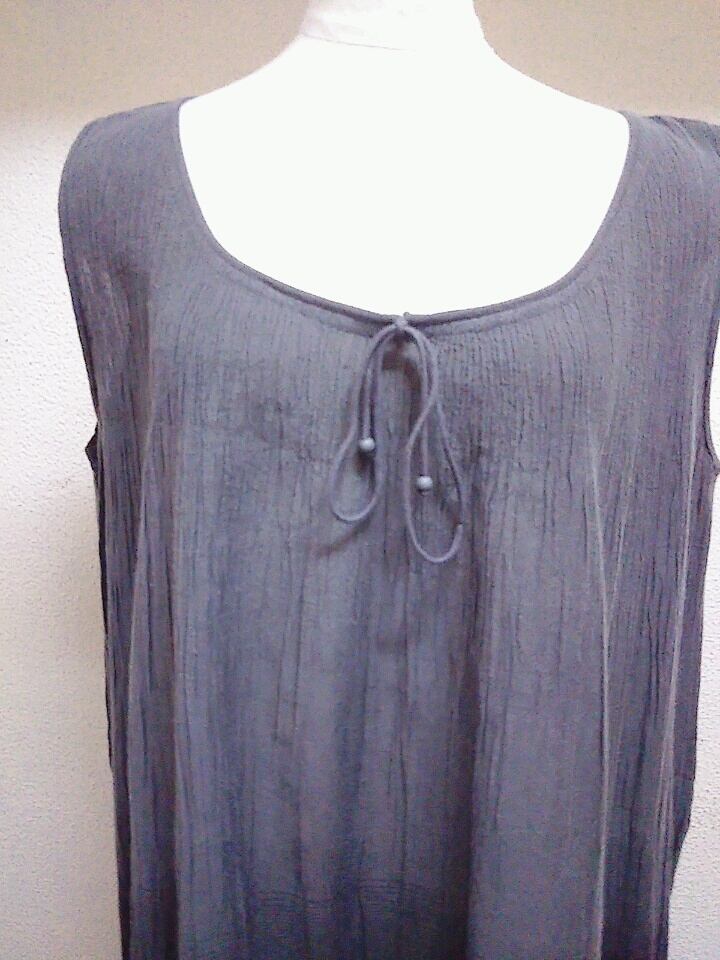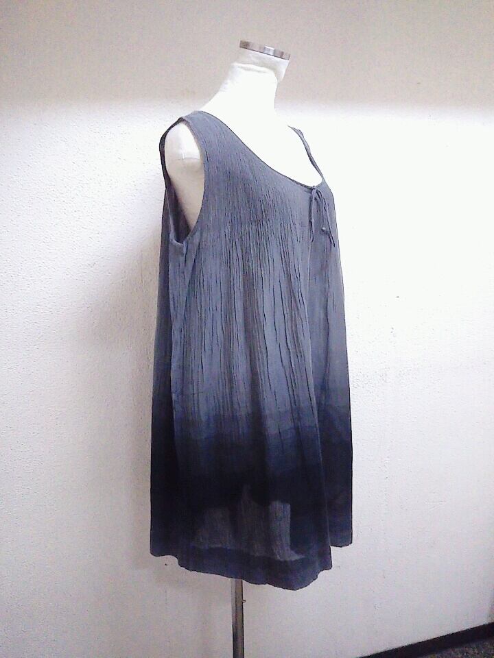 イッセイミヤケのノースリーブワンピースです。色はグレー色、黒色です。