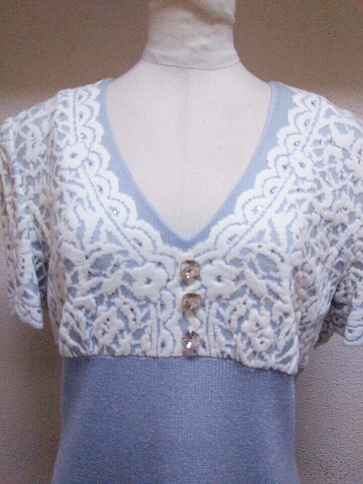 セントジョン 半袖ワンピース 白水色 ラインストーン ST.JOHN