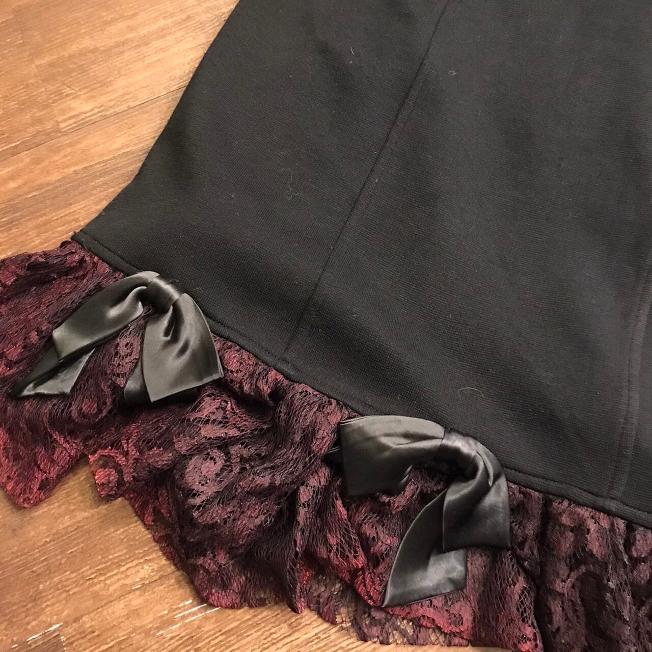 usedの長袖ワンピースです。色は黒です。茶色のレース、黒のリボンがついたデザインです。