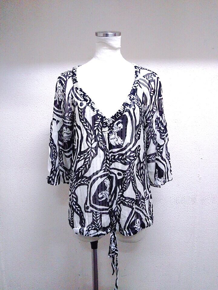 ダイアンフォンファステンバーグ 長袖トップス 白黒色 シルク DIANE VON FURSTENBERG