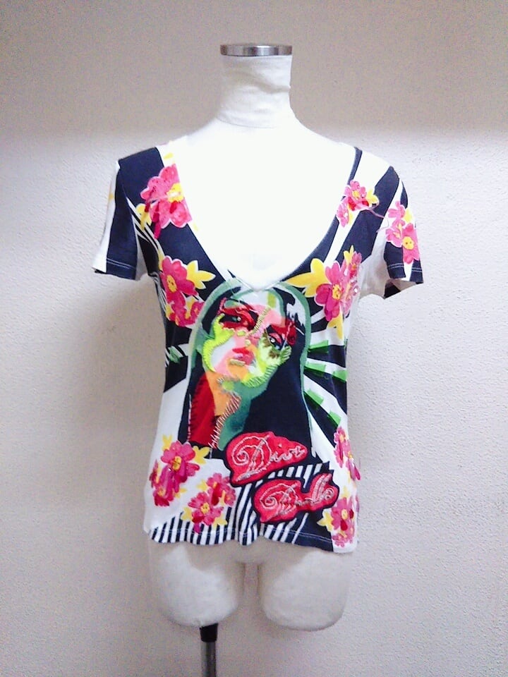 ディオールの半袖Tシャツです。色は白色、黒色、赤色です。花柄が施されたデザインです。