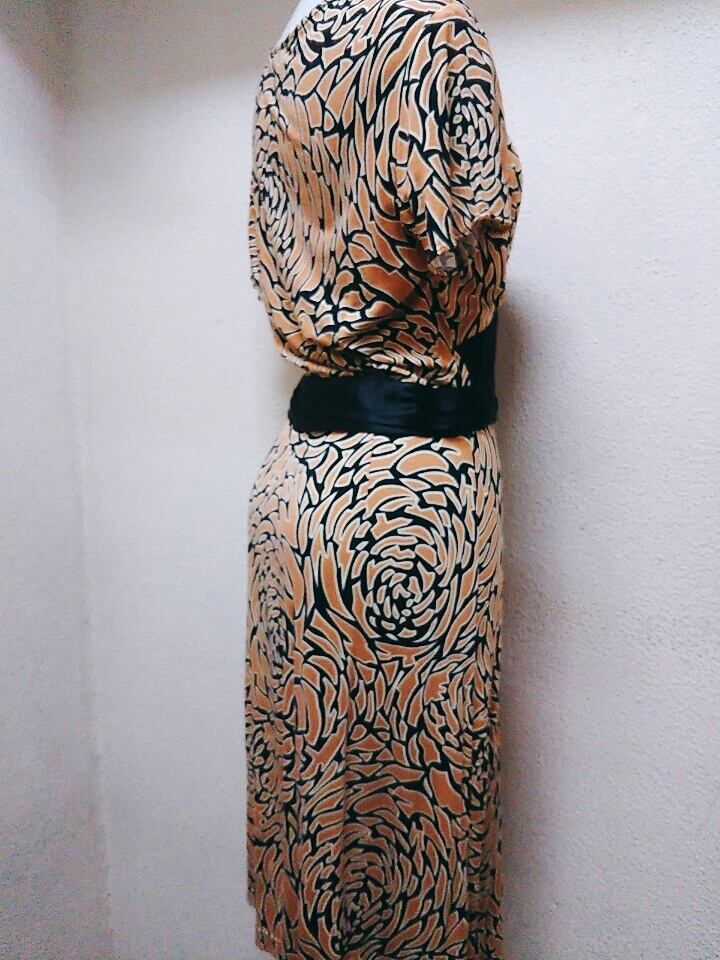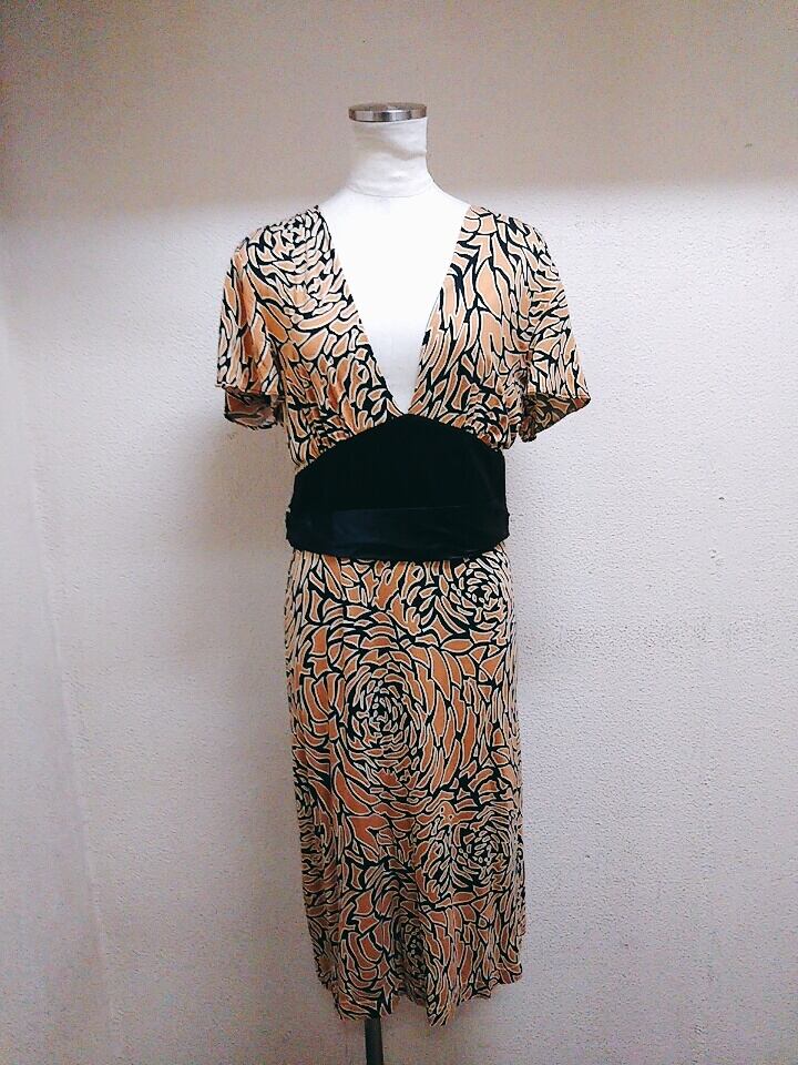 ダイアンフォンファステンバーグ 半袖ワンピース 黒茶色 シルク DIANE VON FURSTENBERG