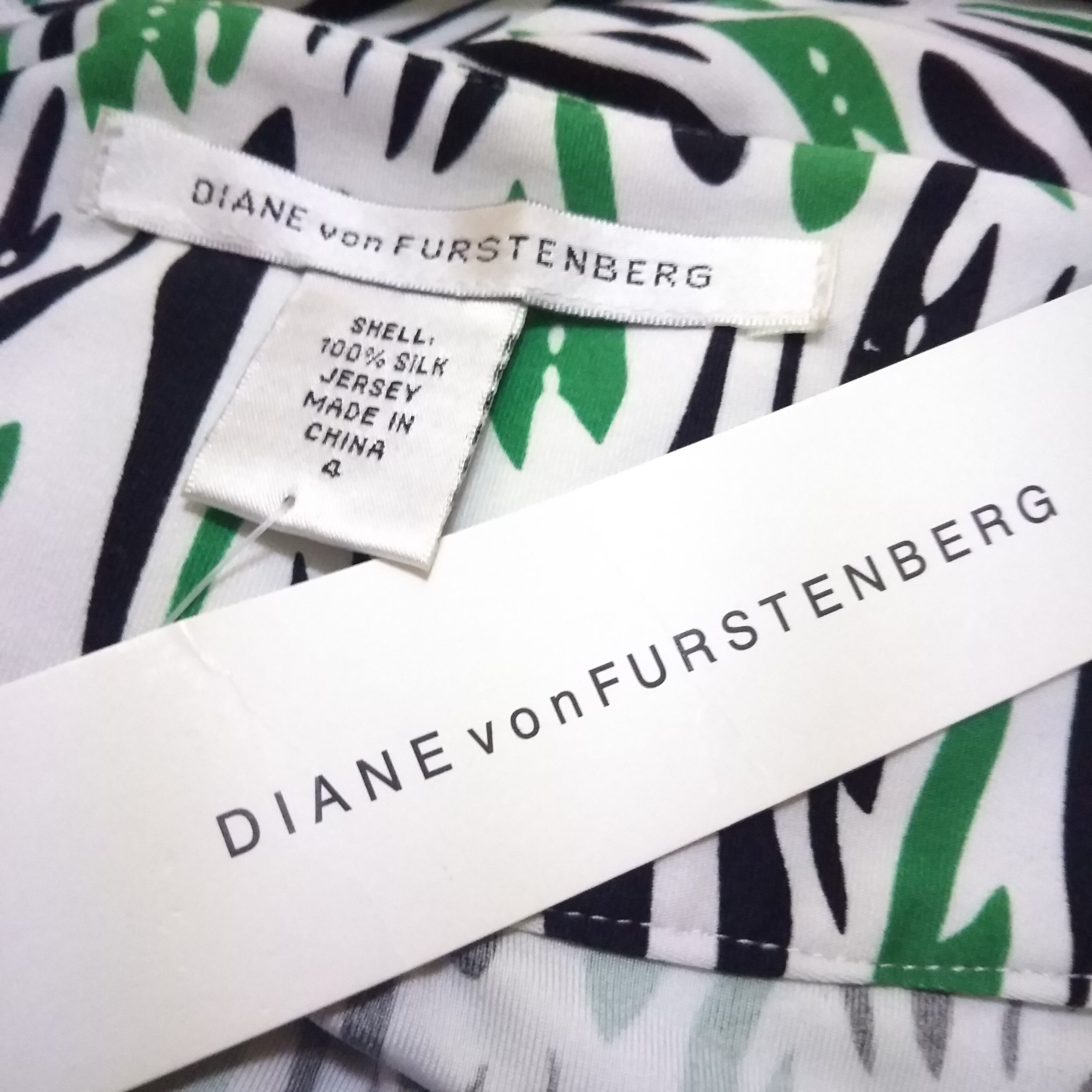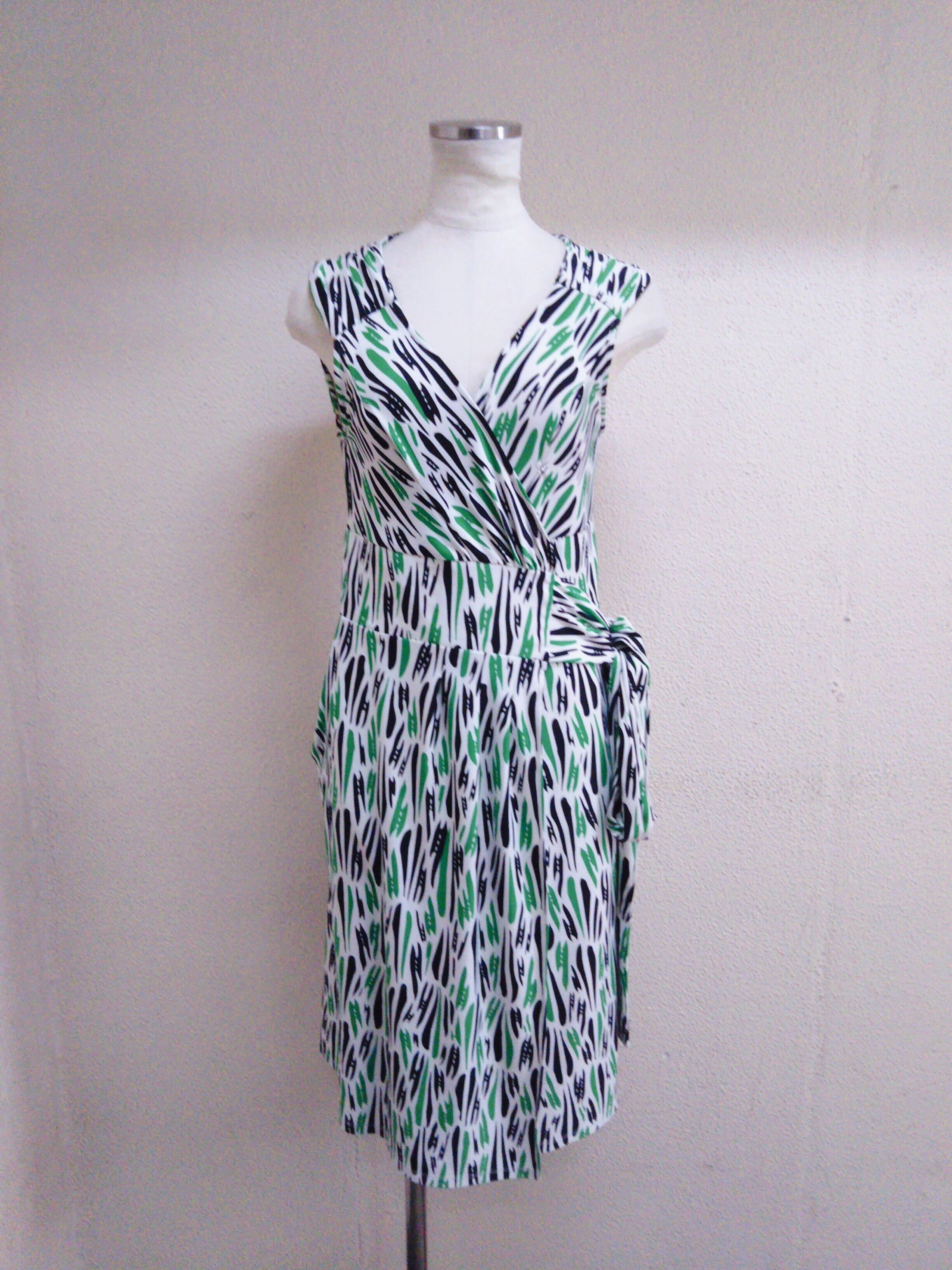 ダイアンフォンファステンバーグ ノースリーブワンピース 黄緑白黒色 DIANE VON FURSTENBERG