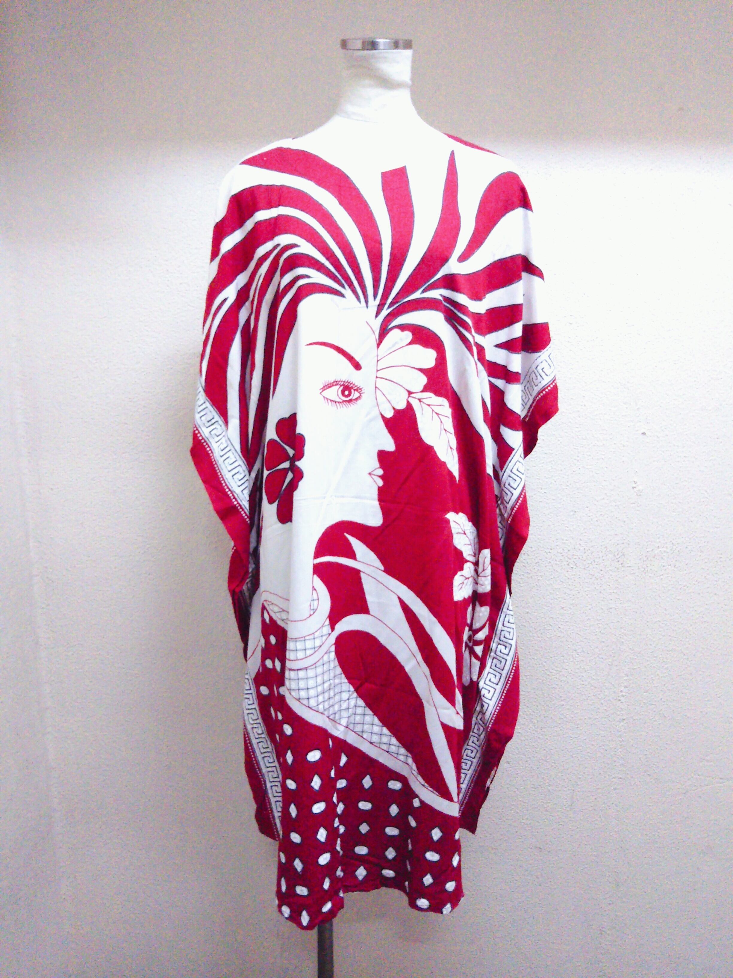 USEDの半袖ワンピースです。色は赤色、白色です。女性柄が施されたデザインです。