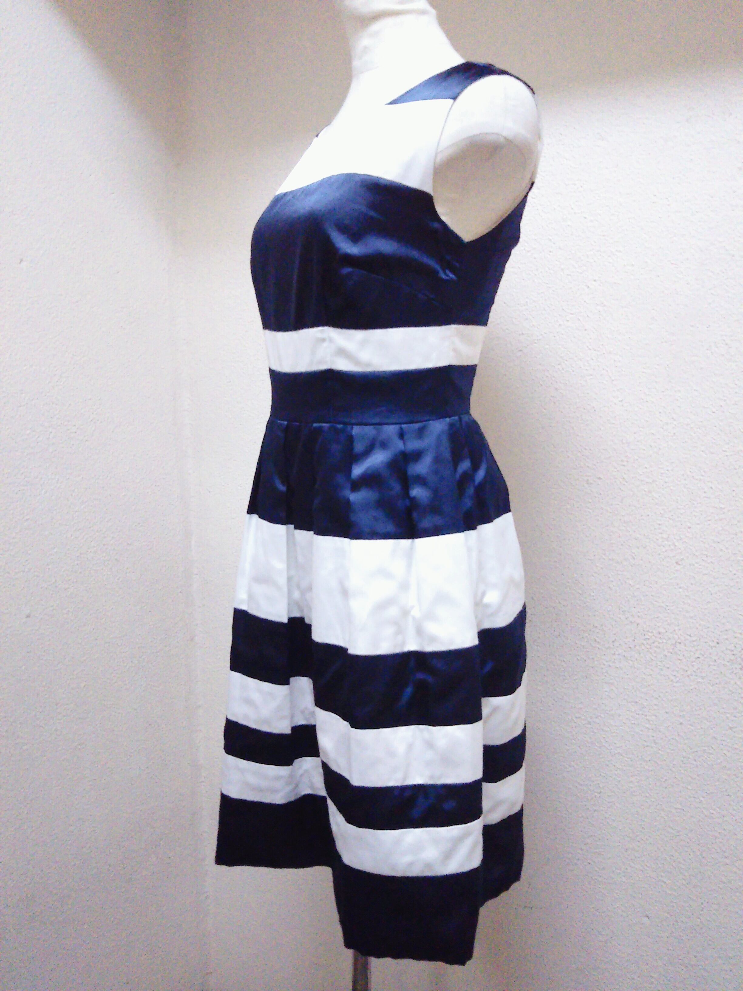マックスアズリア ノースリーブワンピース 白紺色 マリン BCBG MAXAZRIA