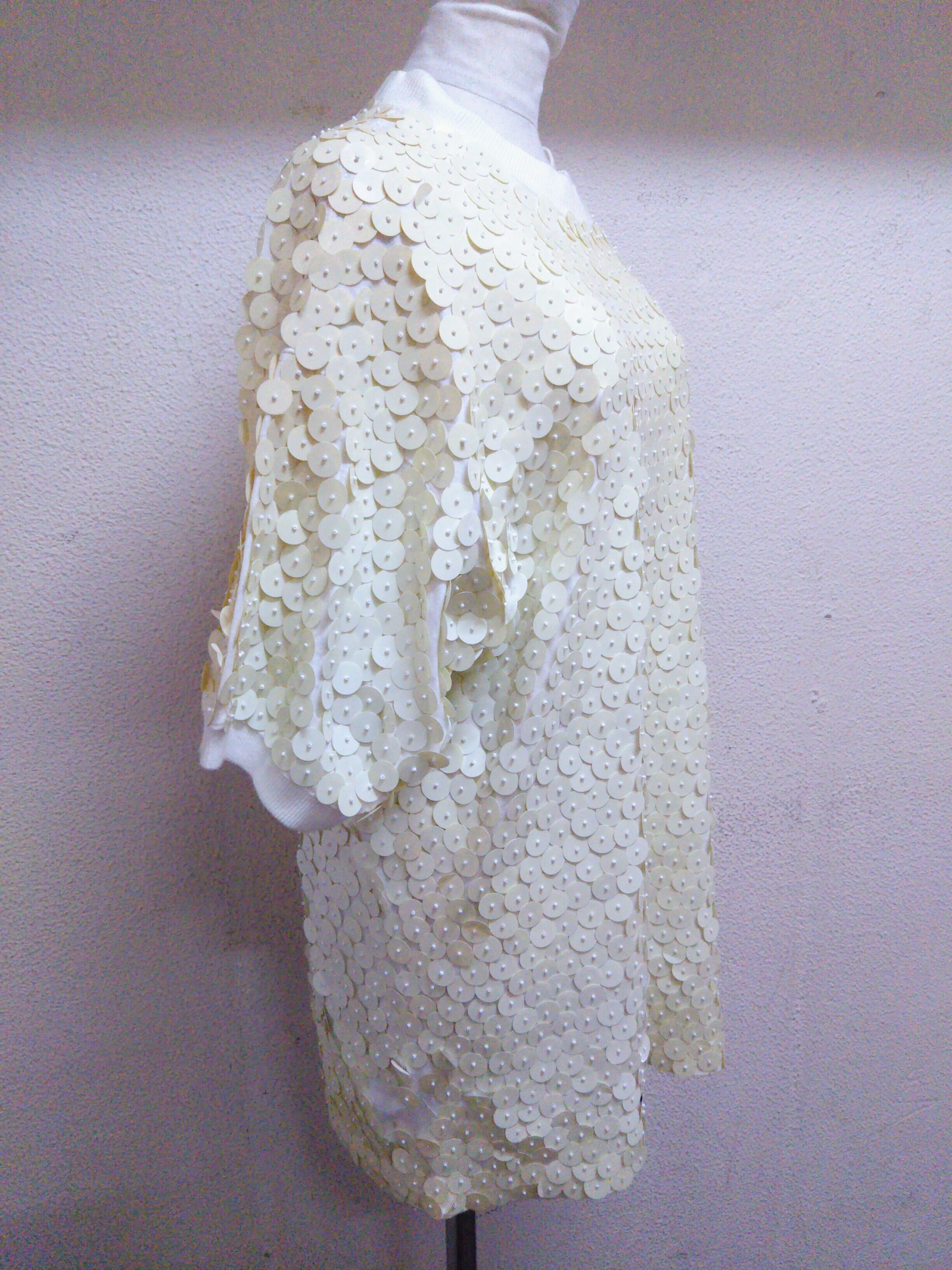 USED 半袖Tシャツです。色はアイボリー色です。スパンコールが施されたデザインです。