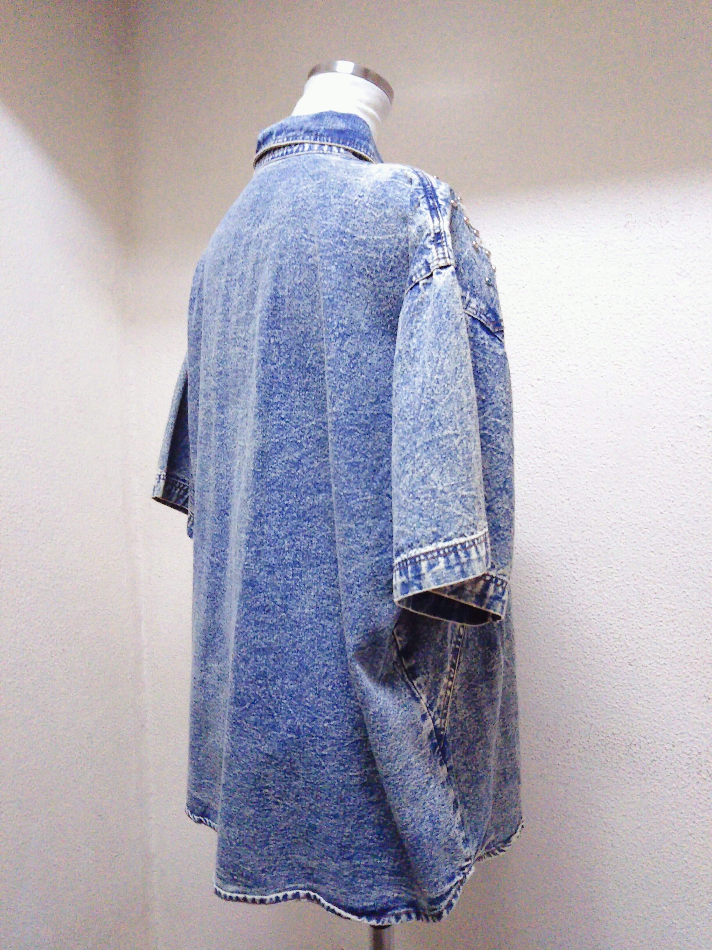 USED 半袖シャツ デニム 花柄 スタッズ