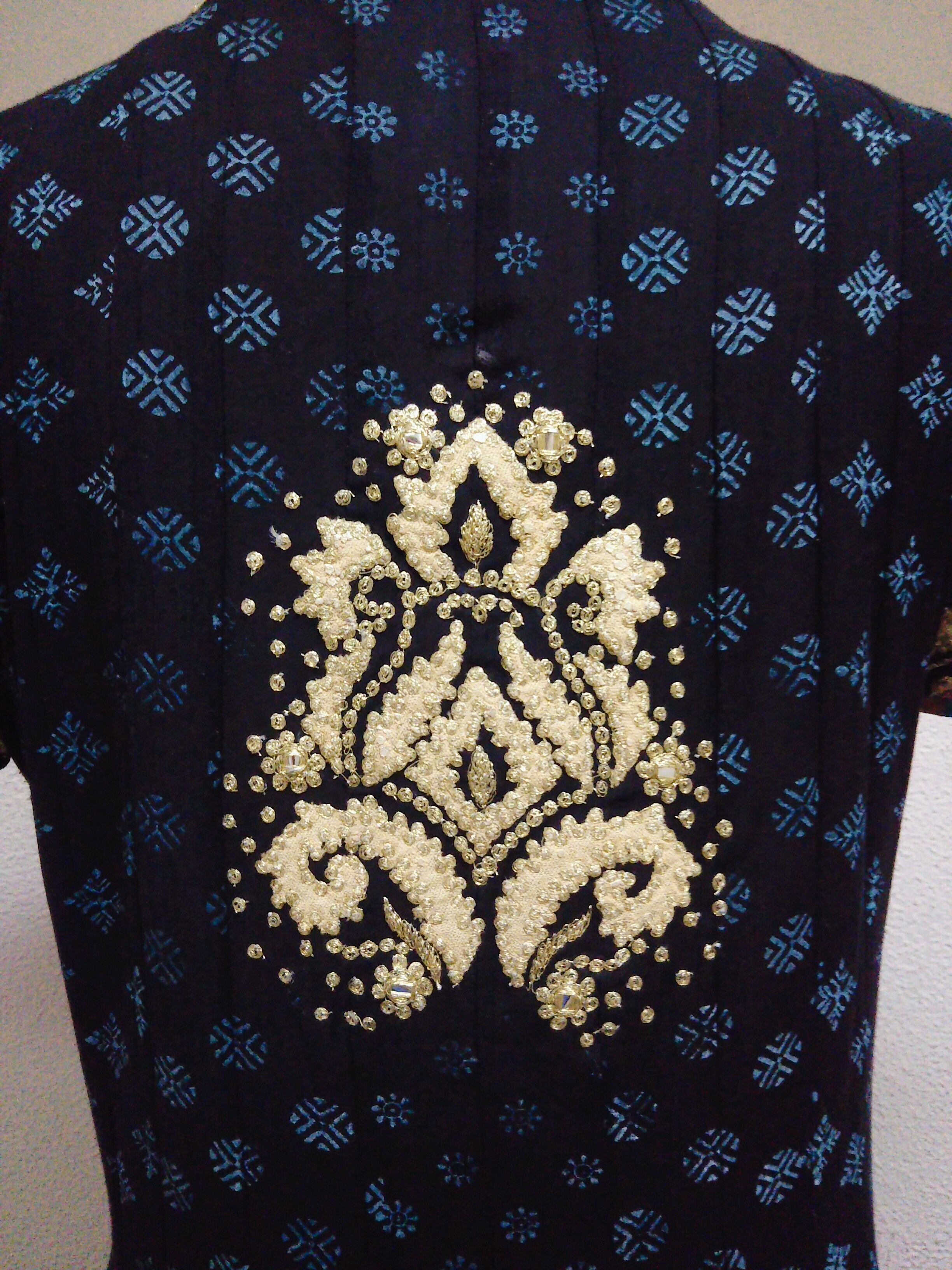 USED 半袖ワンピース 黒色 ゴールド 刺繍