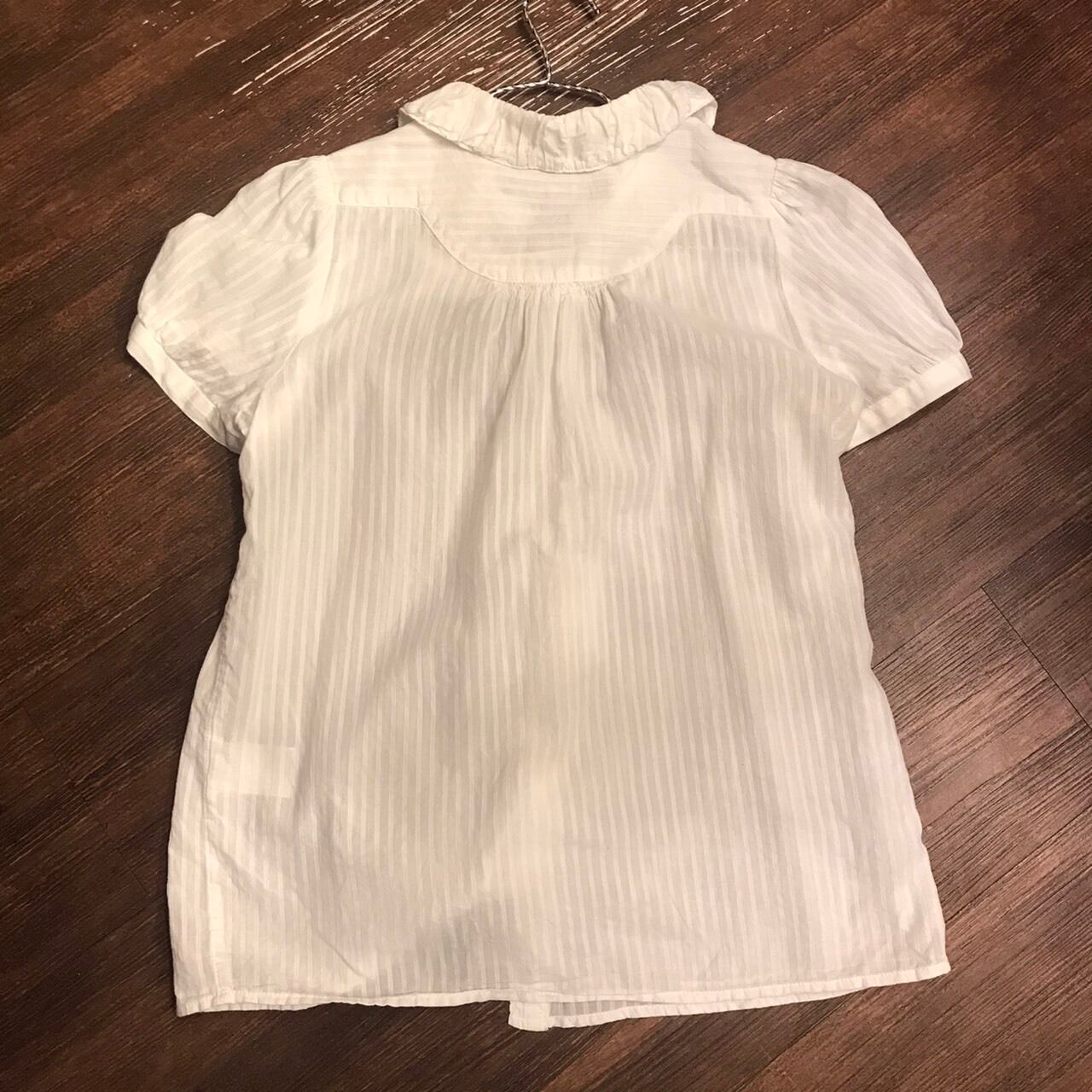marcbymarcjacobsの半袖ブラウスです。色は白色にシャドーストライプです。所々にギャザーの入った可憐なデザインです。