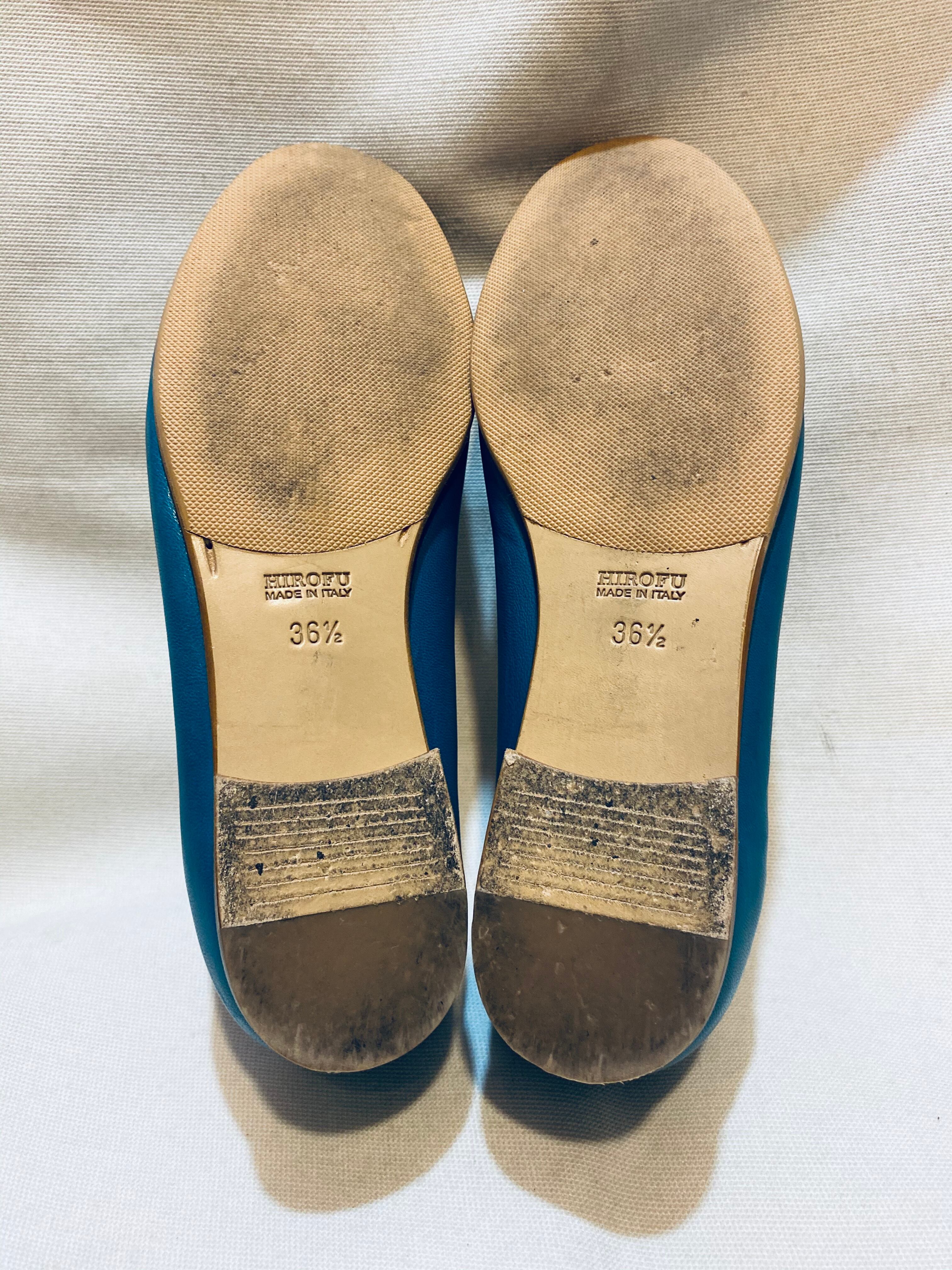 ヒロフ バレエシューズ 水色 レザー HIROFU