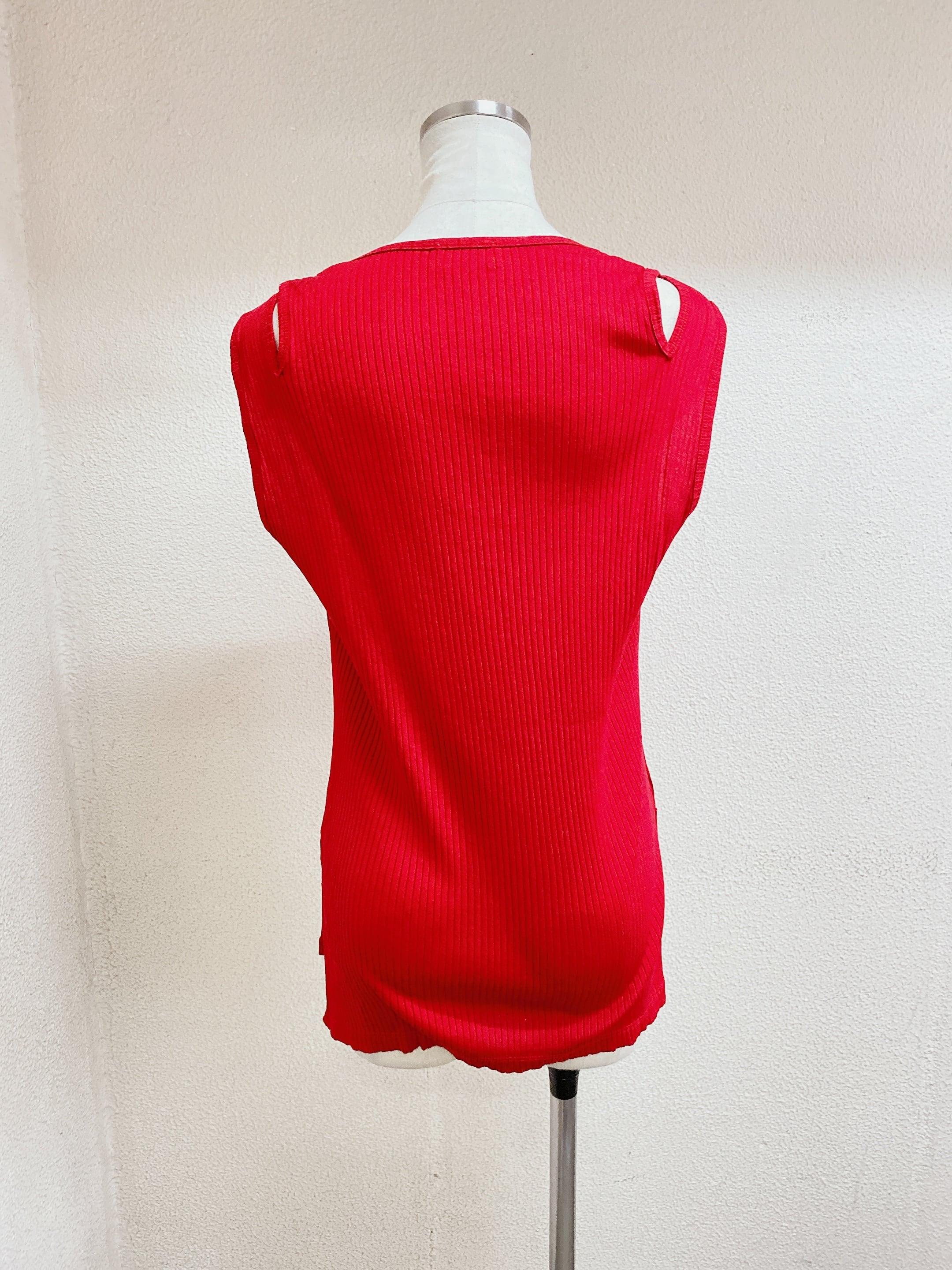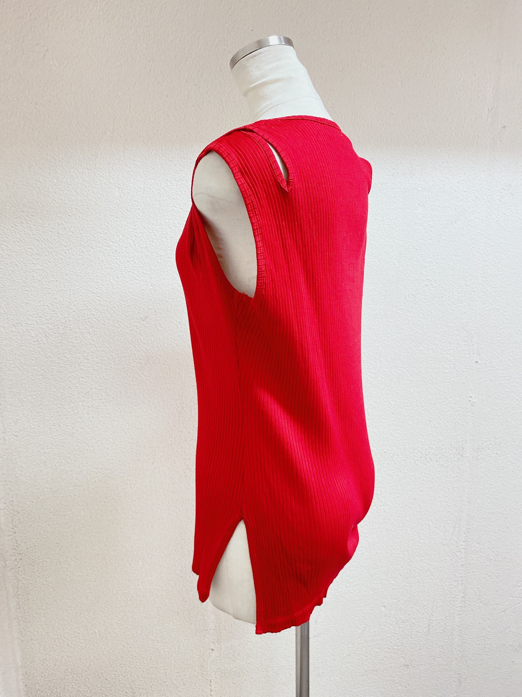 イッセイミヤケ ノースリーブトップス 赤色 ISSEY MIYAKE FETE