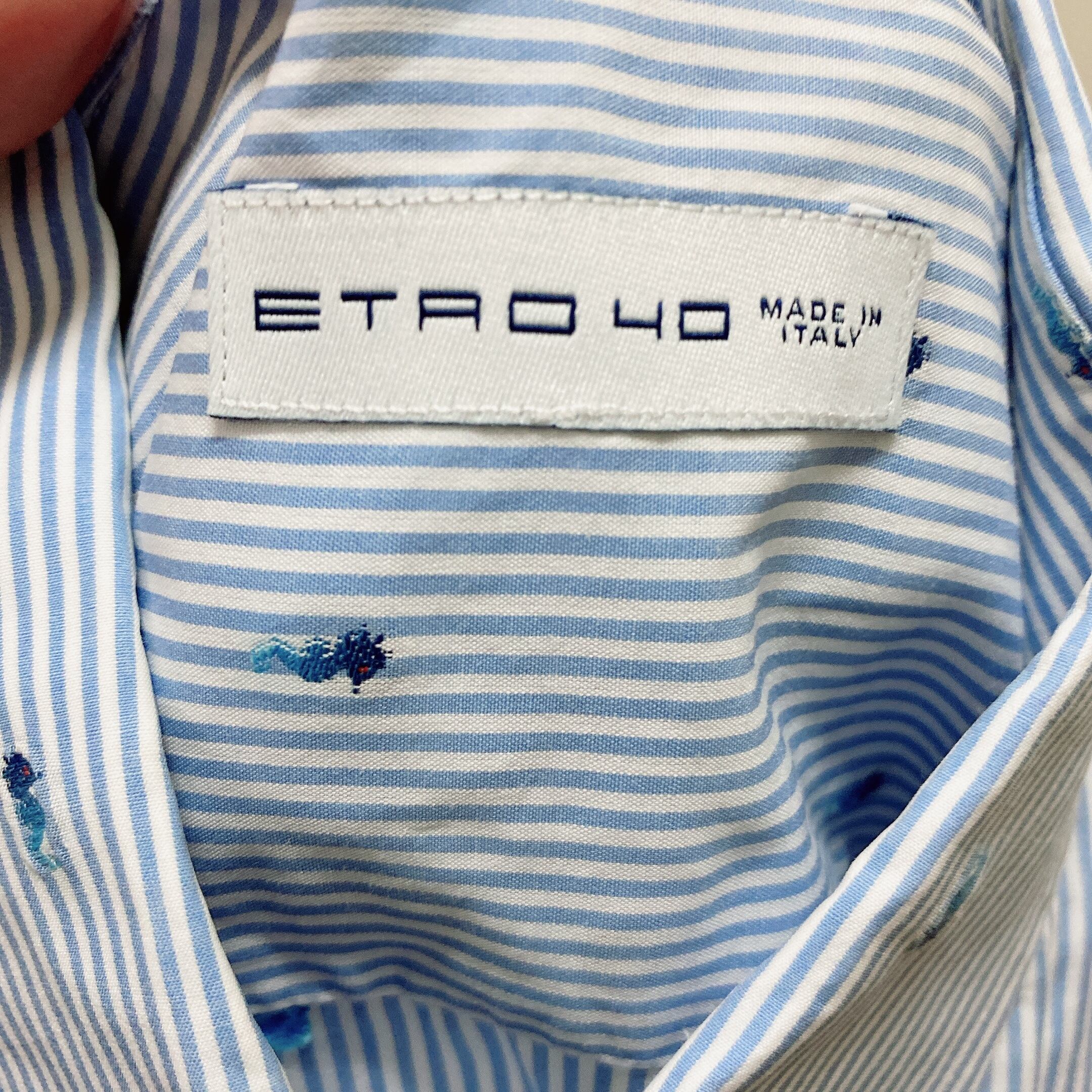 エトロ 長袖シャツ 水色 ストライプライン ETRO