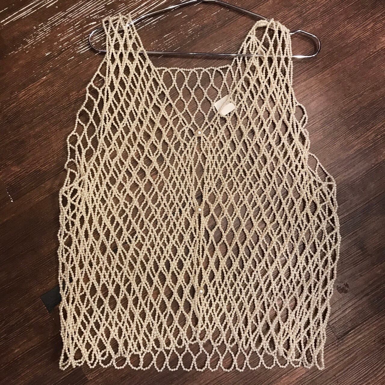 usedのパールのベストです。ブラウスやTシャツにの上に着て重ね着を楽しめます。