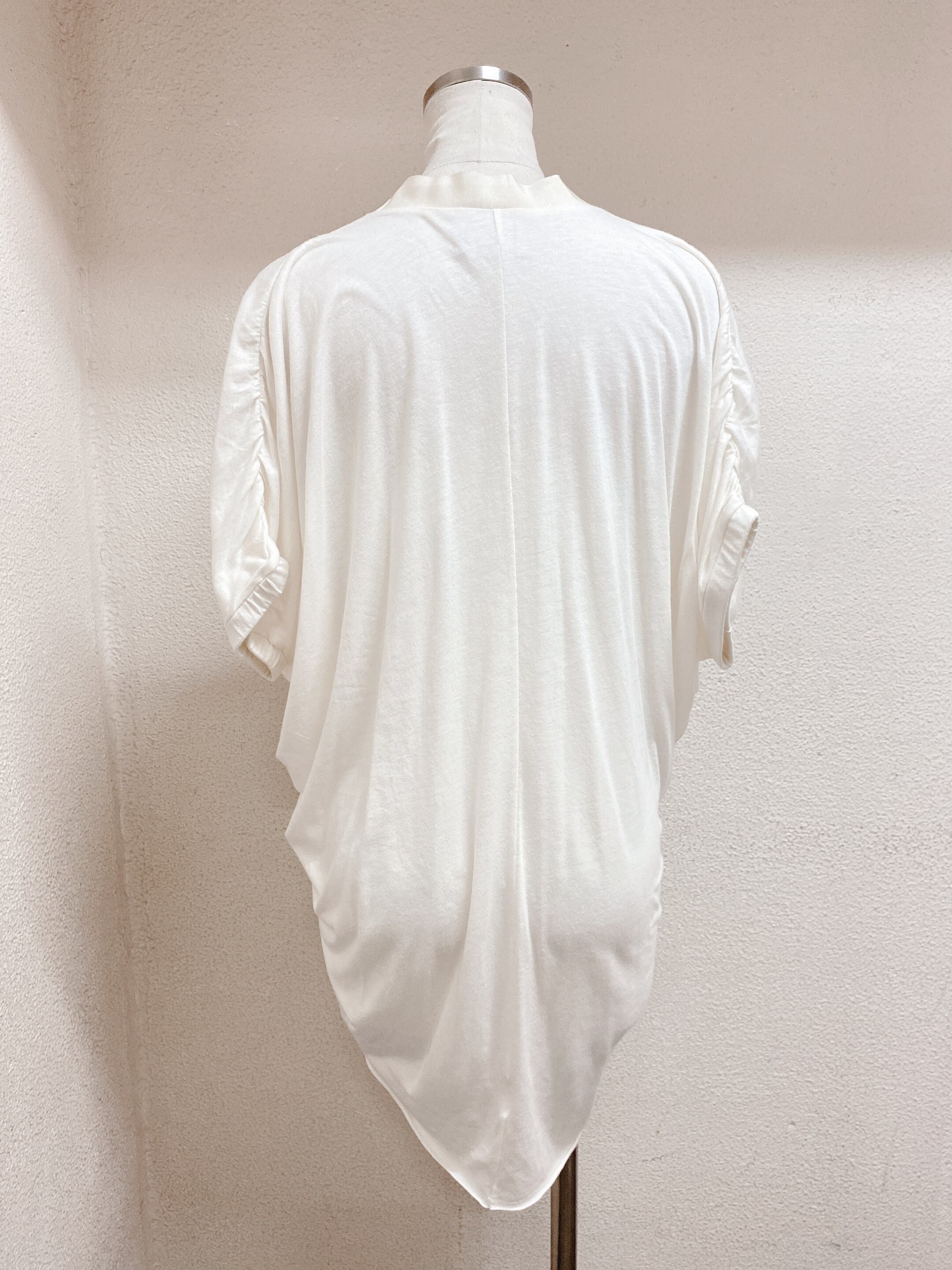ランバンの半袖トップスです。色は白色です。ドルマンタイプのトップスです。