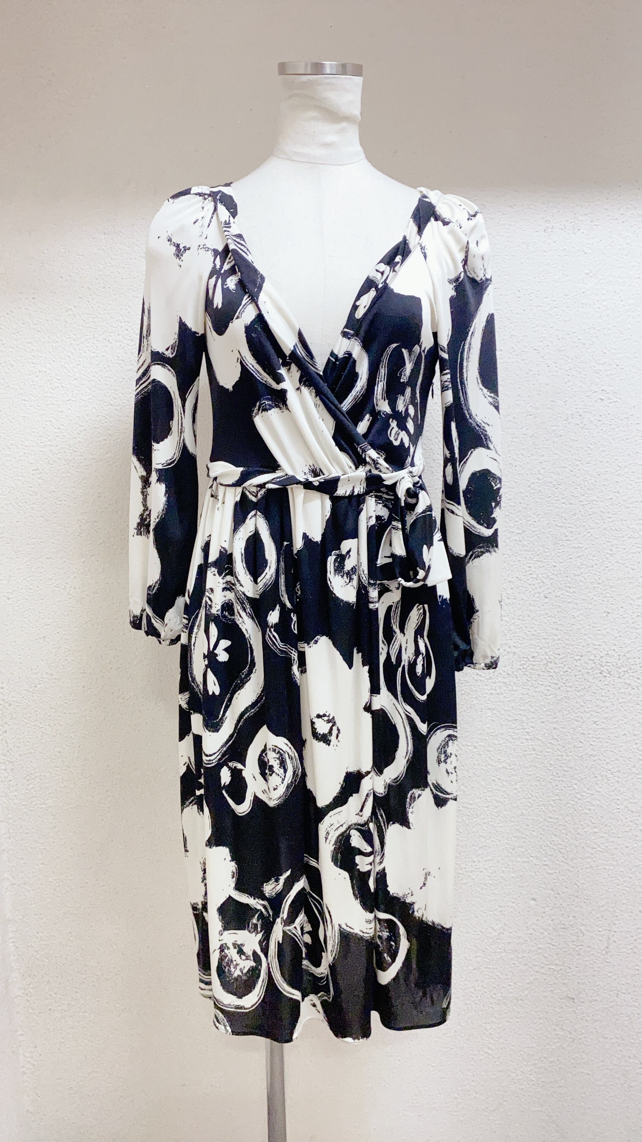 モスキーノ 長袖ワンピース 白黒色 シルク MOSCHINO