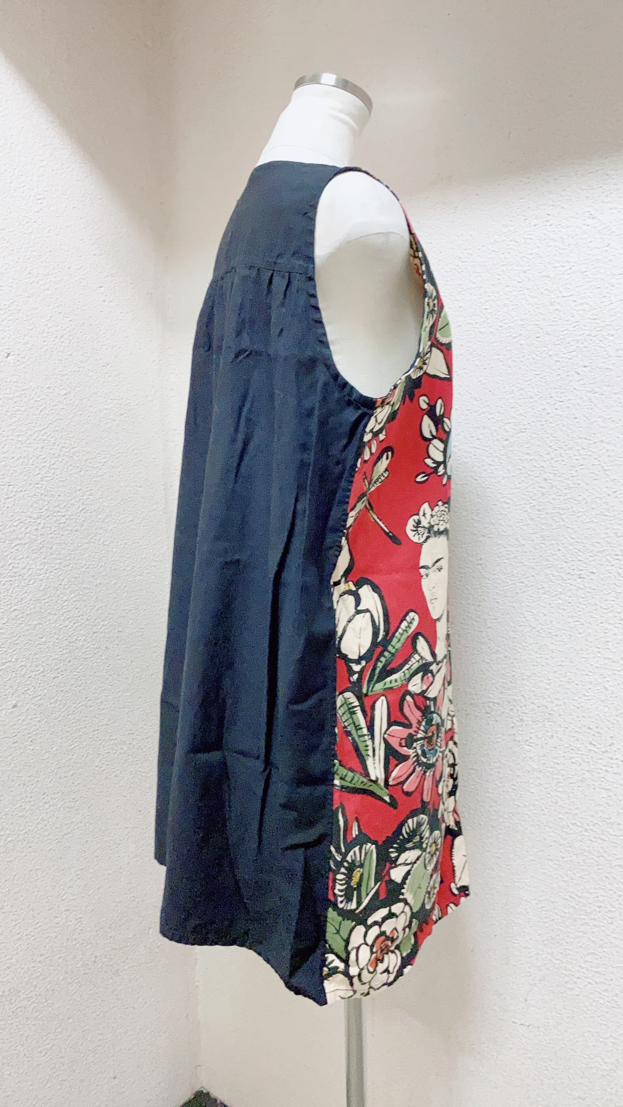 ソレアドリコ ノースリーブワンピース 赤黒色 花柄 soleadorico