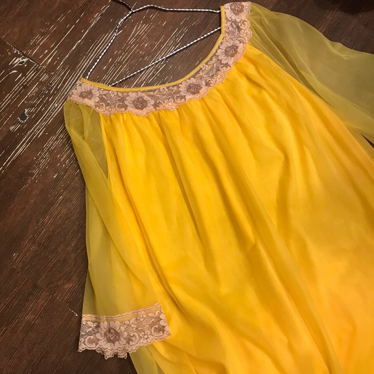 usedの長袖チュールワンピースです。色は黄色です。リボンやレースがあしらわれたデザイン