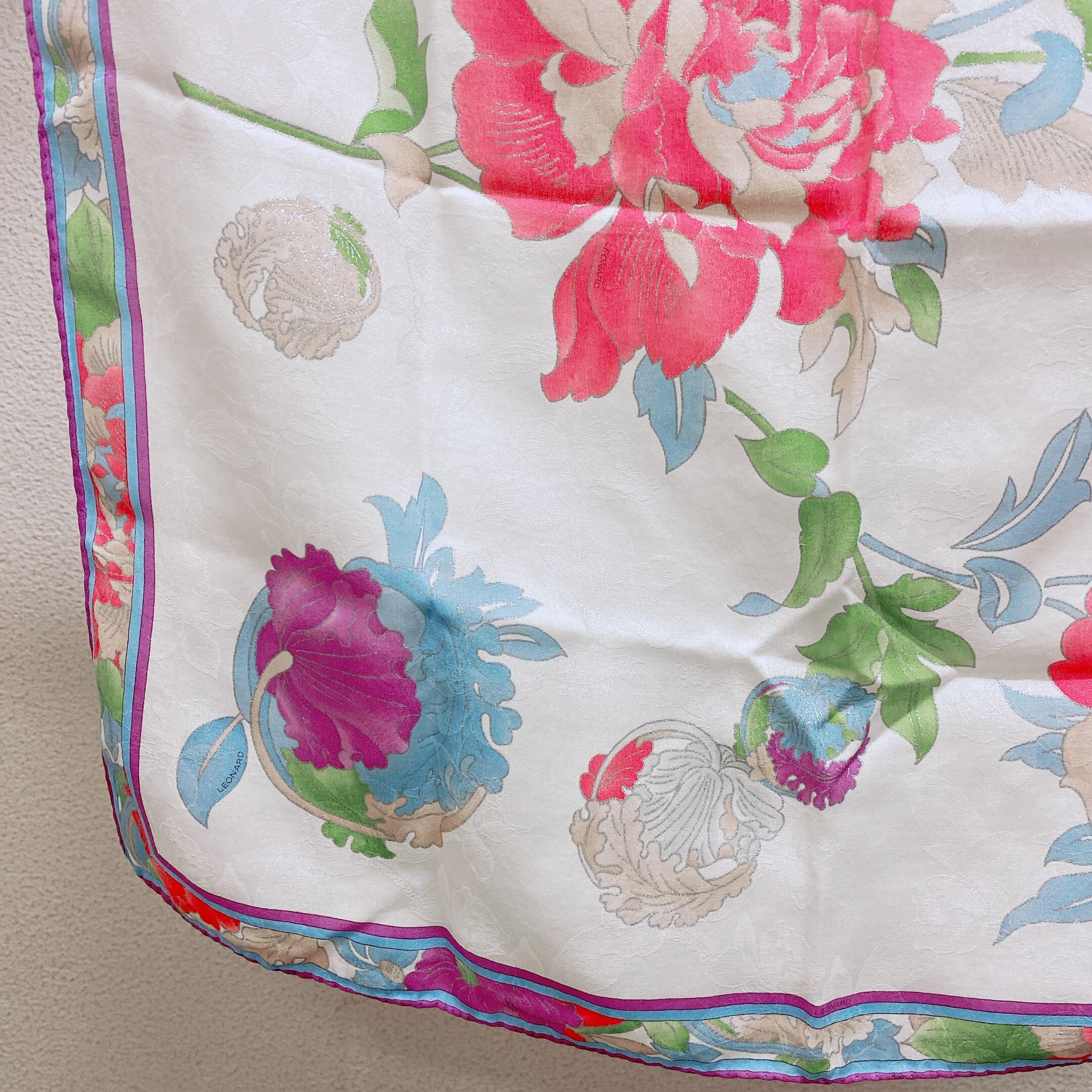レオナール スカーフ 白色 花柄 LEONARD